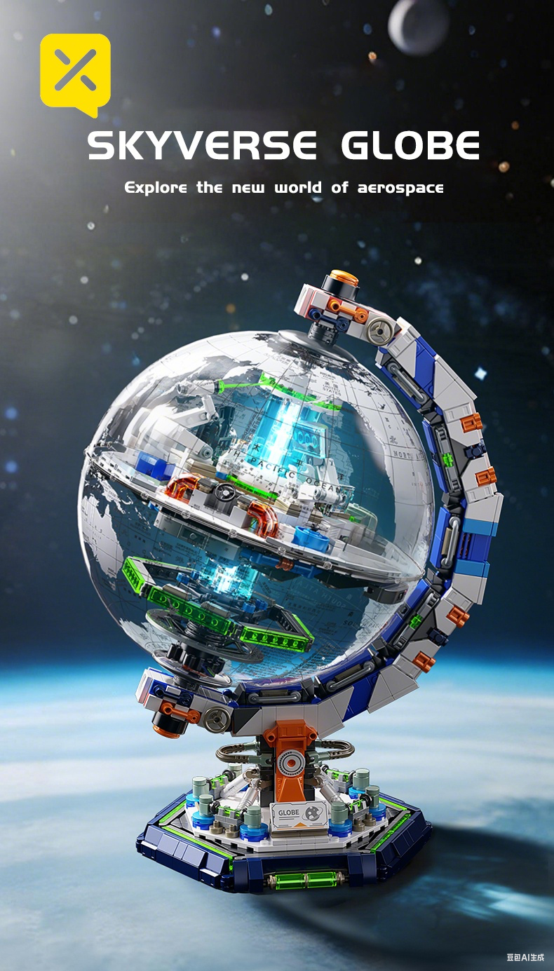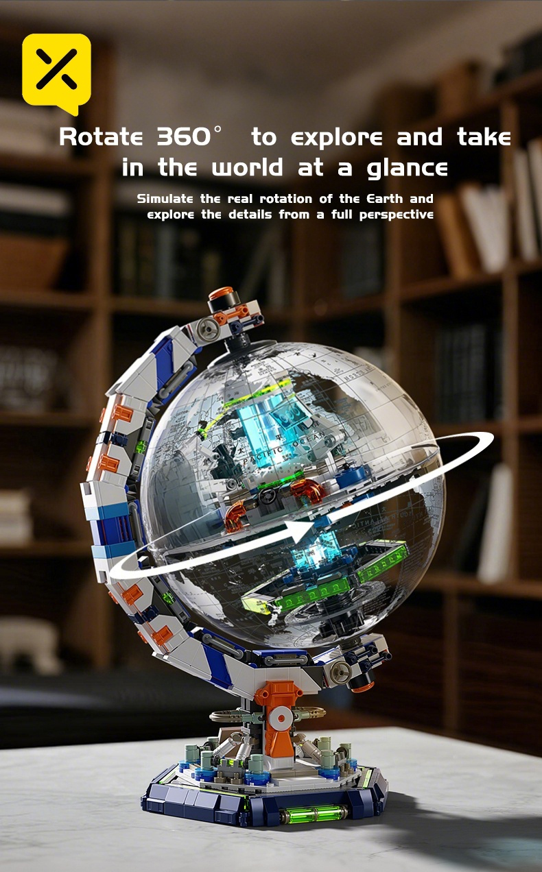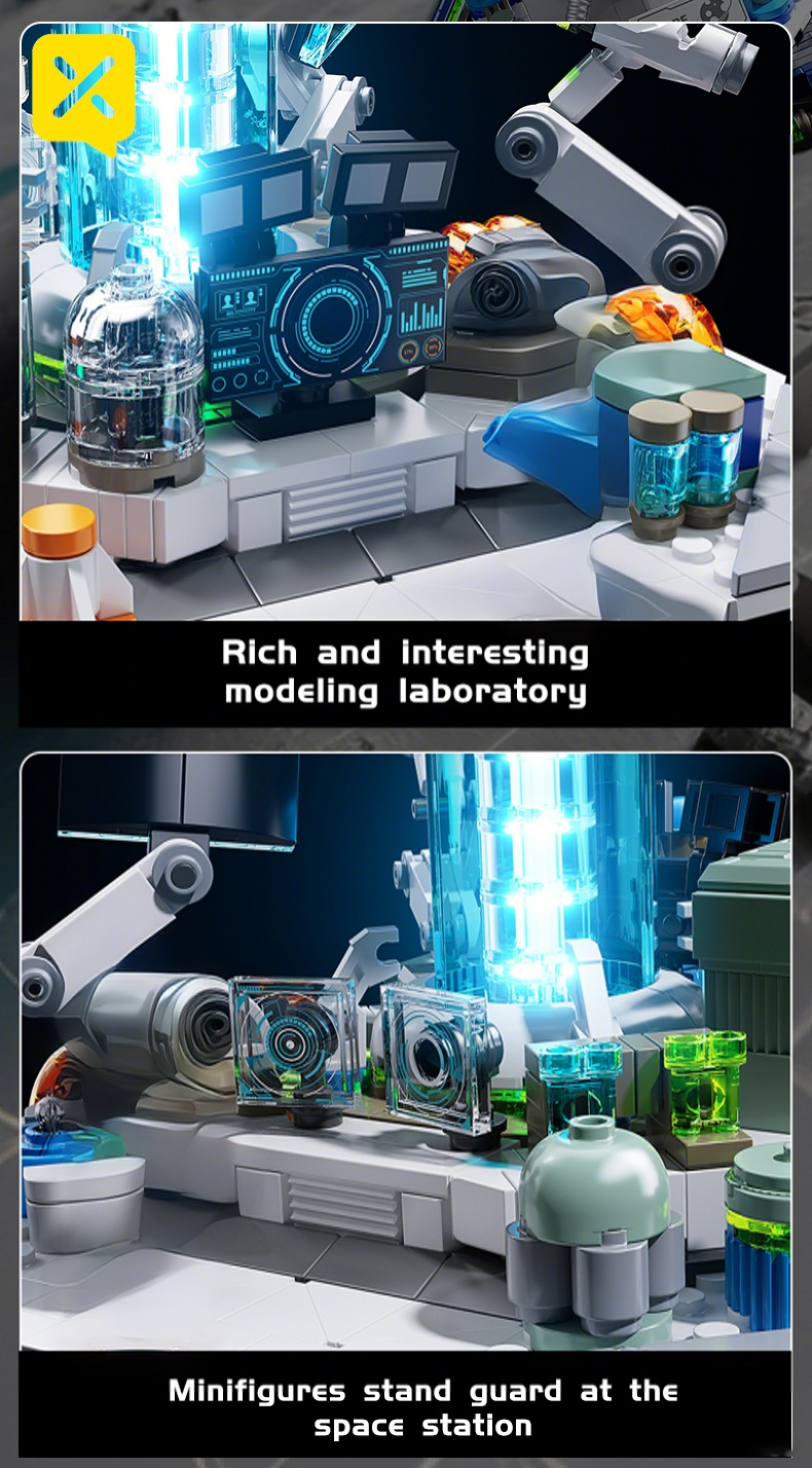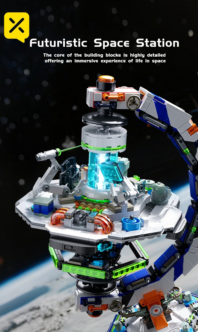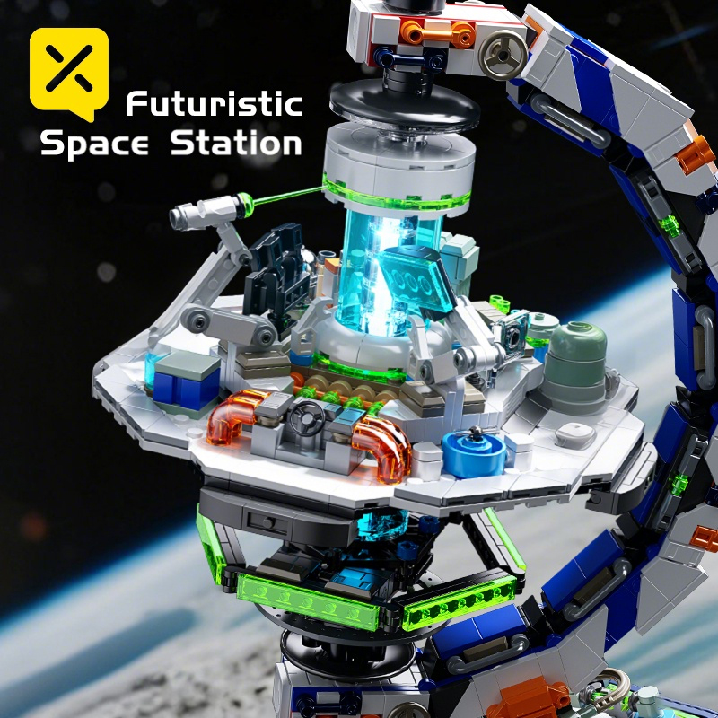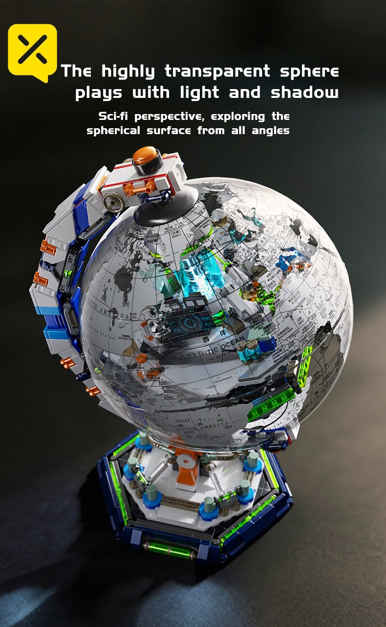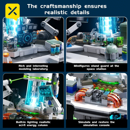 1793PCS Sci-Fi Space Station Globe - Energy Console & Movable Scientist Figures | Precision Lab Structure | STEM Building Toy | Christmas/New Year Gift