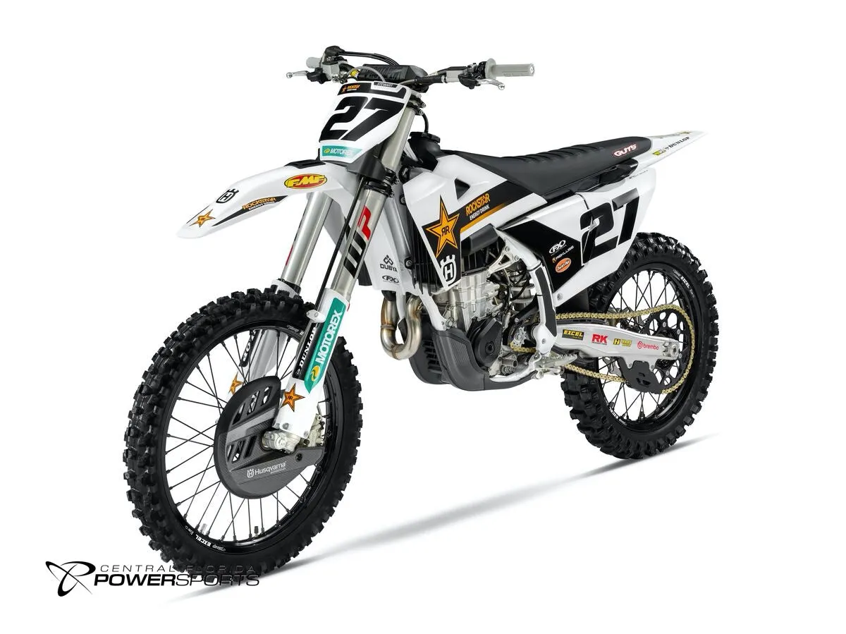 Enhanced with multiple chassis refinements to take on-track performance to an even higher level, the 2024 FC 450 Rockstar Edition sets a new standard for competition-focused motocross machinery. New engine mounts, together with a revised, lighter frame and updated suspension settings improve agility and stability to create a confidence inspiring riding experience. Ergonomics are further improved with the addition of new tank shrouds while advanced rider aids, specifically chosen Technical Accessories, and the latest race team graphics complete the build of this premium machine.