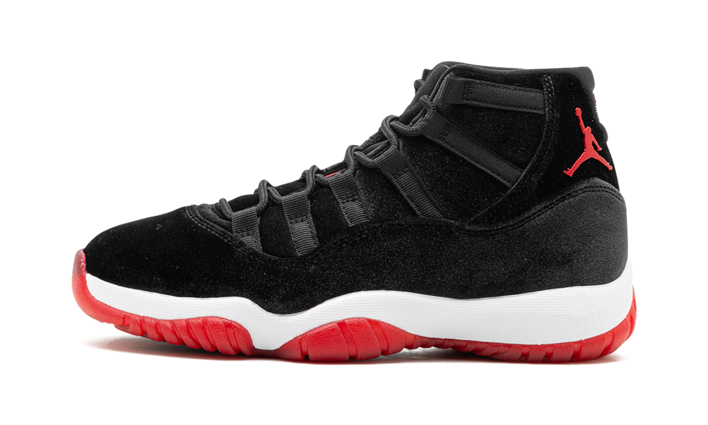 The Air Jordan 11 "Bred Velvet" brings a soft touch to one of the most renowned colorways of the sneaker. The familiar black with red color scheme from the original Jordan 11 "Bred" are updated with plush velvet across the upper on this women's exclusive AJ11.