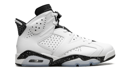 The Air Jordan 6 “Reverse Oreo” is a colorway of Michael Jordan’s sixth signature shoe in the popular, cookie-inspired theme. The “Oreo” colorway was introduced on the Air Jordan 4 in 1999, and has been used on countless Air Jordan models over the years, including on the Jordan 6. The upper features a white leather design with tonal overlays and perforations for breathability on the sides and collar. The tongue and Jumpman logos on the tongue and heel appear in black, while the midsole and heel spoiler feature black-and-white speckle detailing in an “Oreo” inspired design. An icy blue translucent outsole completes the look. Release date: June 8, 2024