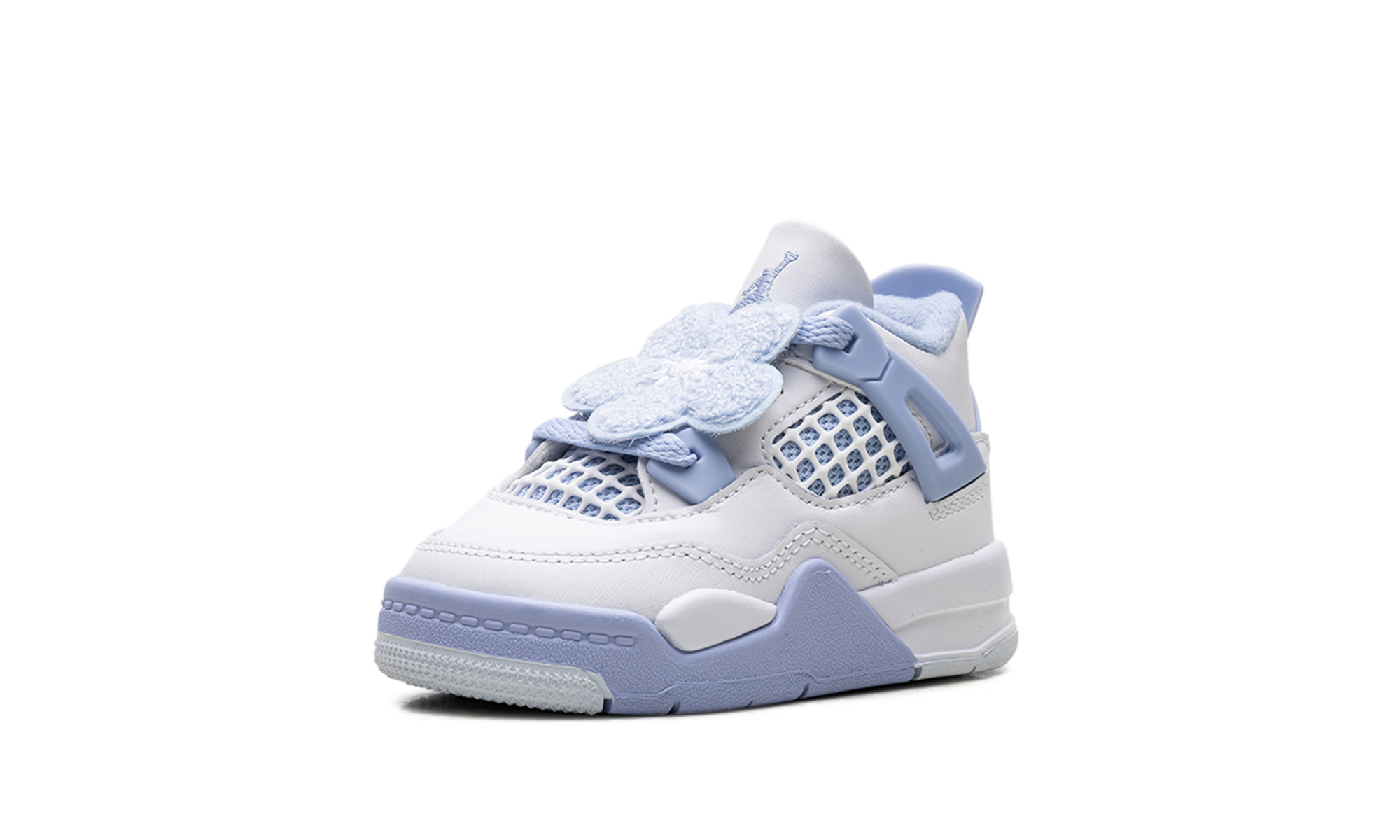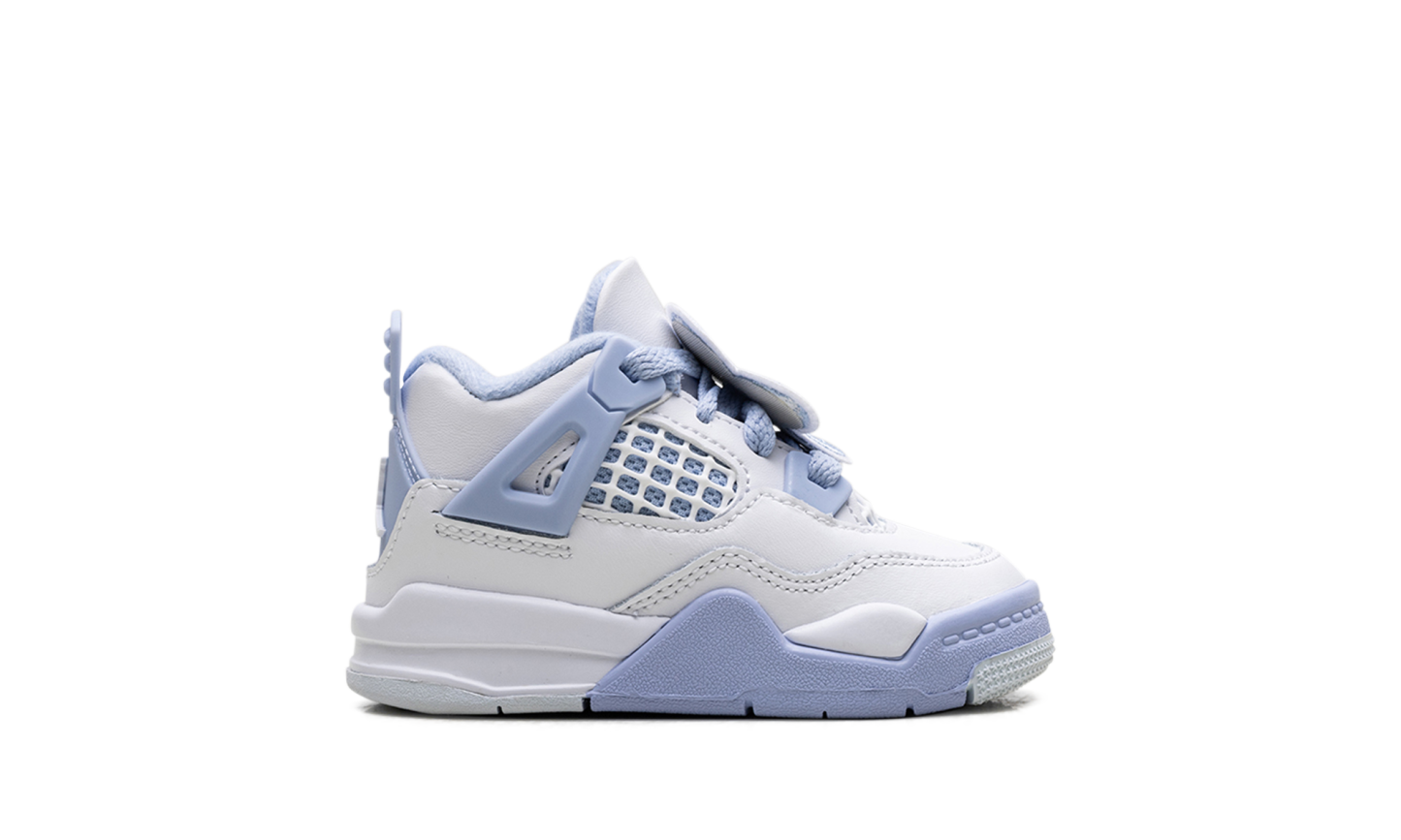 Gift your toddler an iconic look with the Air Jordan Retro 4 TD, the incredibly charming "Aluminum" edition. Crafted to capture the style of the women's exclusive release, this miniature sneaker features a premium white leather upper accented with soft Aluminum blue on the structural wings and heel. A cushioned midsole provides lightweight support for little feet, while the Jumpman branding and classic silhouette ensure an undeniably fresh aesthetic for the playground.