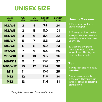 The Crocbandâ„¢ Collection features original Crosliteâ„¢ foam construction for reliable cushioned comfort, a sporty design that's easy to step into and out of, and a variety of energy-boosting colors and graphic designs. Show your stripes!