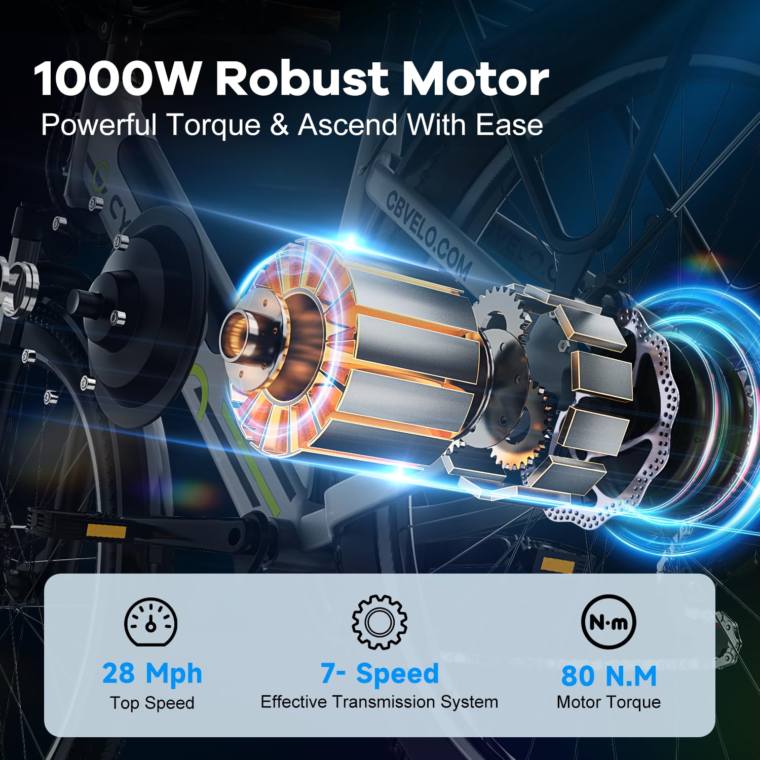 - Powerful 1000W Peak Electric Bike:high speed brushless Peak 1000W motor and 7-speed transmission, making steep hills and long rides a breeze, up to 25+MPH, up to 80+ Miles, Long-range e-bike offers perfect efficiency and balance of power to ensure your ride as enjoyable. More Powerful, More Fun, No Fear Uphill, Stable Less noise,Low maintenance than 350w electric bike. e-bike is perfect for para adultos