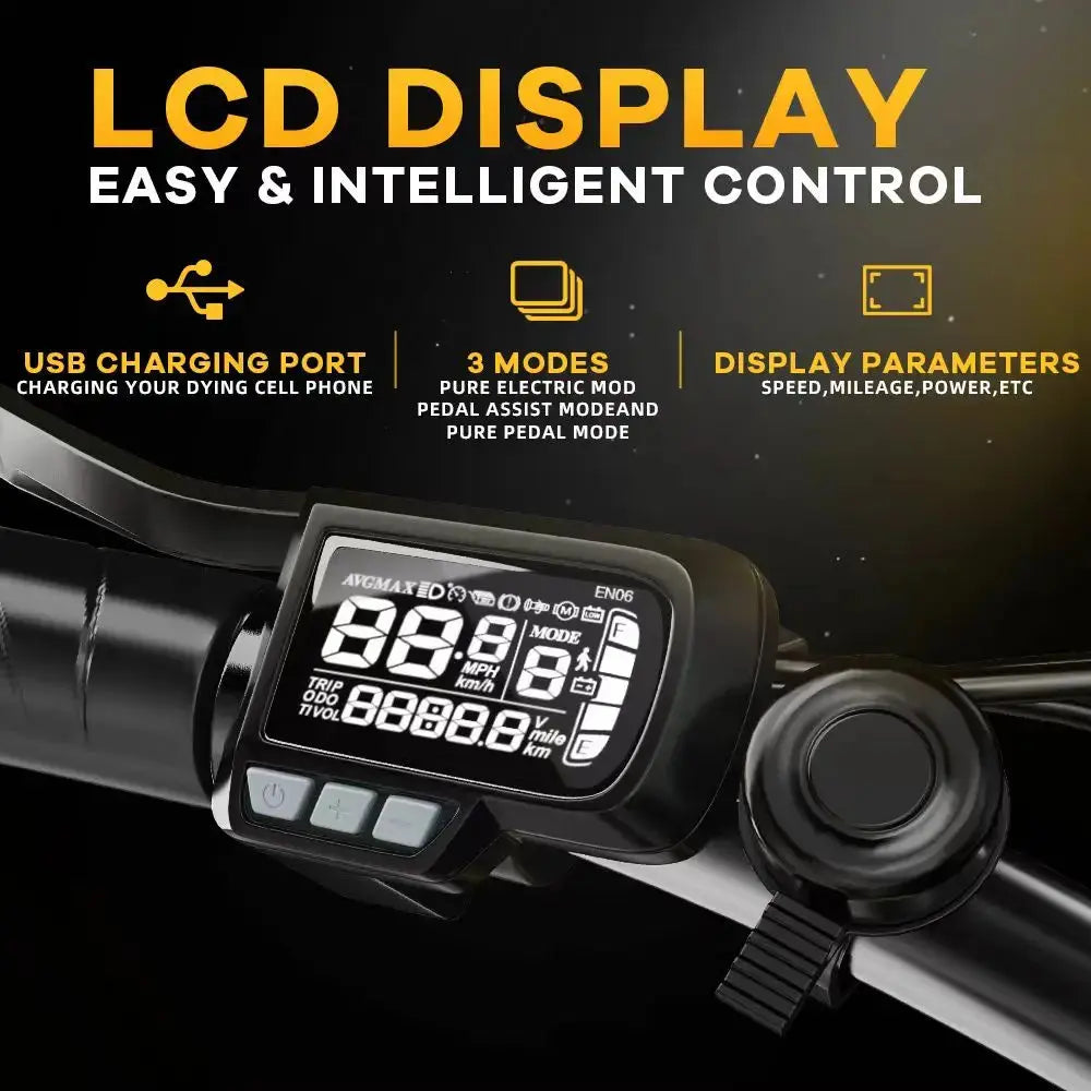 - Foldable and portable step through e-bike: The foldable design of the Cybervelo e-bike ensures that you can take it anywhere. There are 3 class modes, five available levels of pedal assist and a professional 7-speed transmission system. The advanced LCD display with charging port continuously shows real-time speed, mileage, and battery power, ensuring you to control your e-bike riding status.