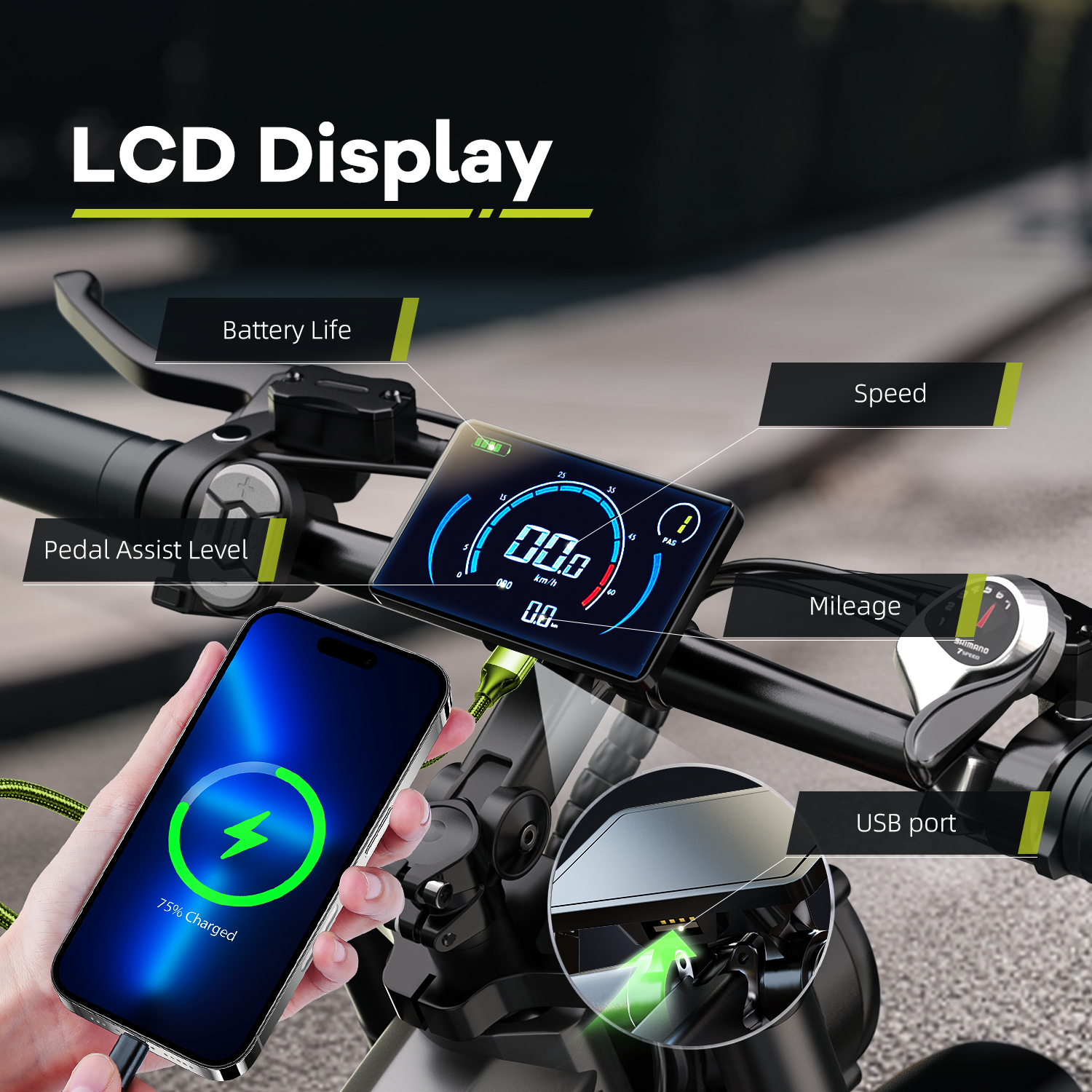 - 【Intelligent LCD Display】-- The large LCD display on this EK9 provides real-time information, including battery status, current speed, total distance, power output and riding time. Instantly detects and reports any errors and seamlessly controls your bicycle's lighting system for safer and more convenient riding.
