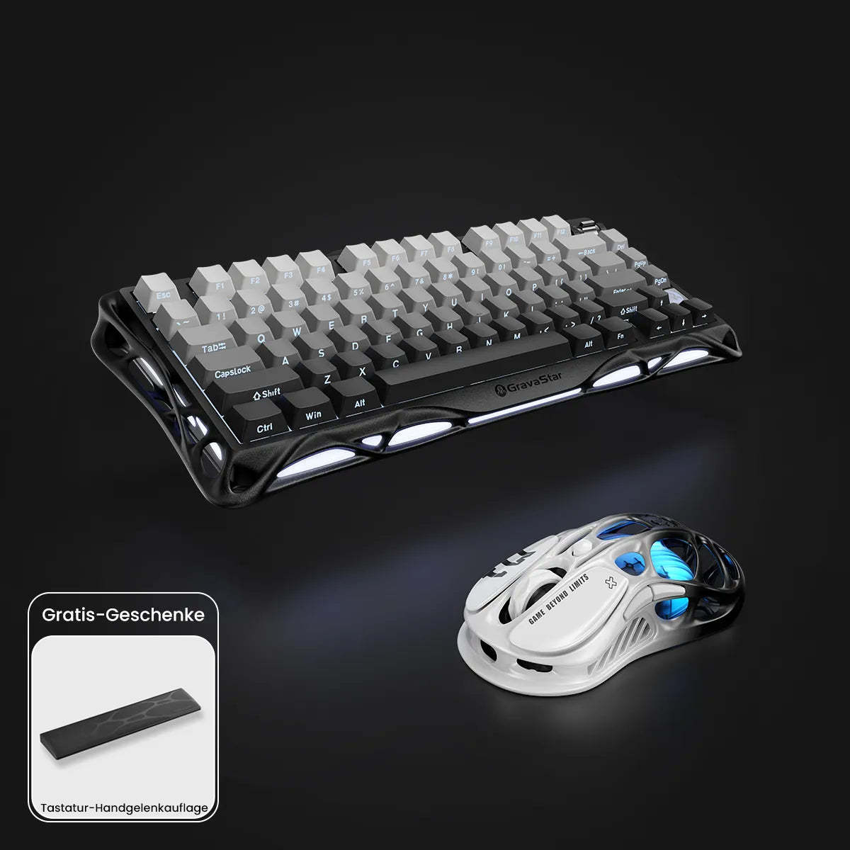 Experience the ultimate gaming setup with the GravaStar Pro gaming complete set - a premium combination of Mercury K1 keyboard and M1 Pro gaming mouse in an elegant gradient black design.