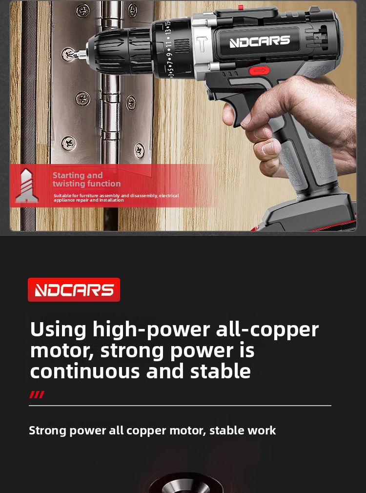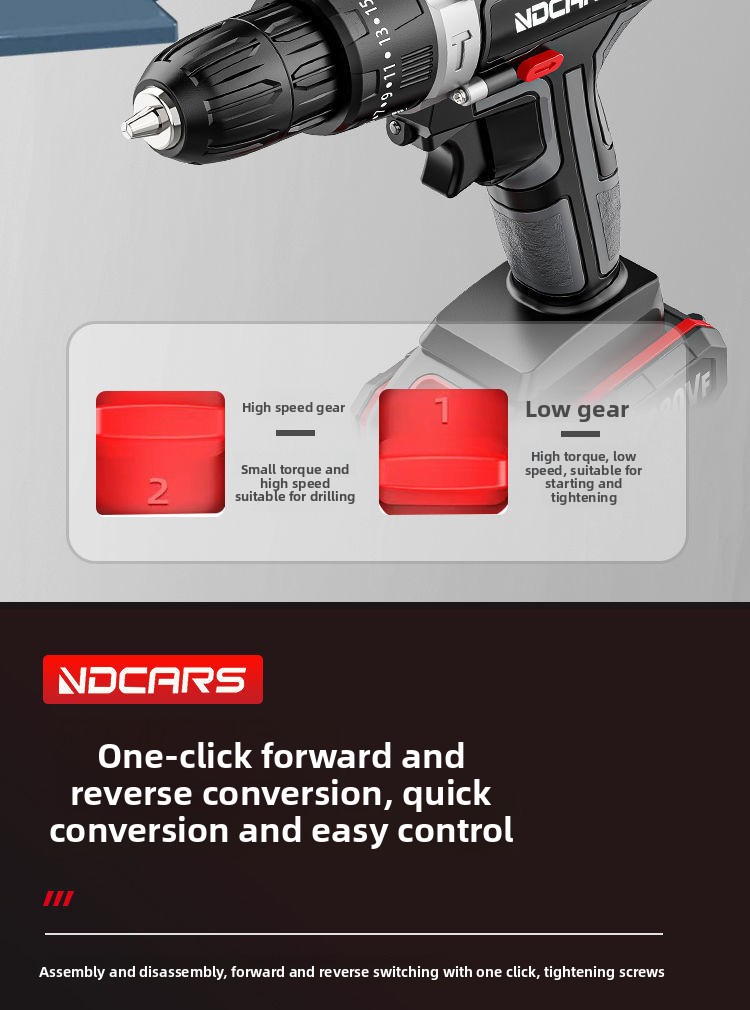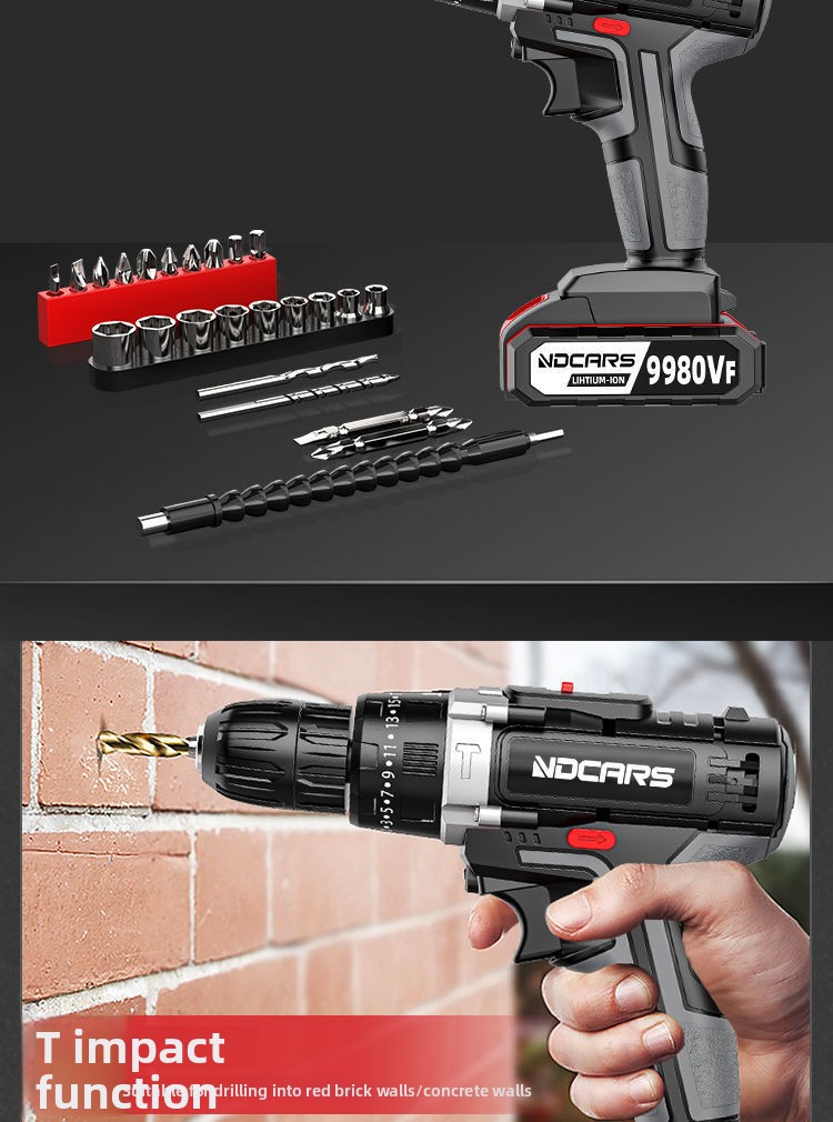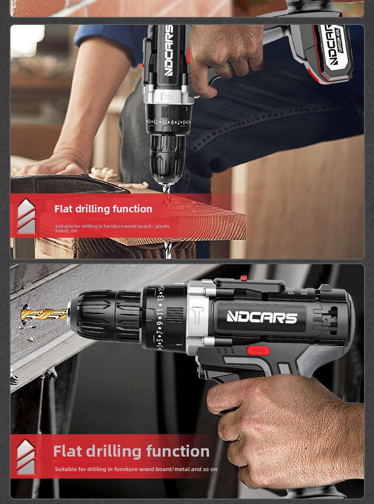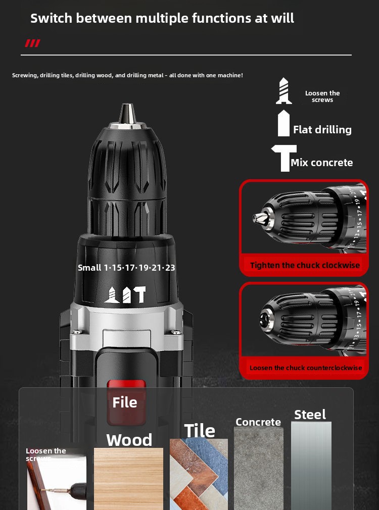 Industrial Grade High Power Electric Hand Drill Lithium Battery Dual Speed Rechargeable Drill Impact Drill Household Multifunctional Electric Screwdriver
