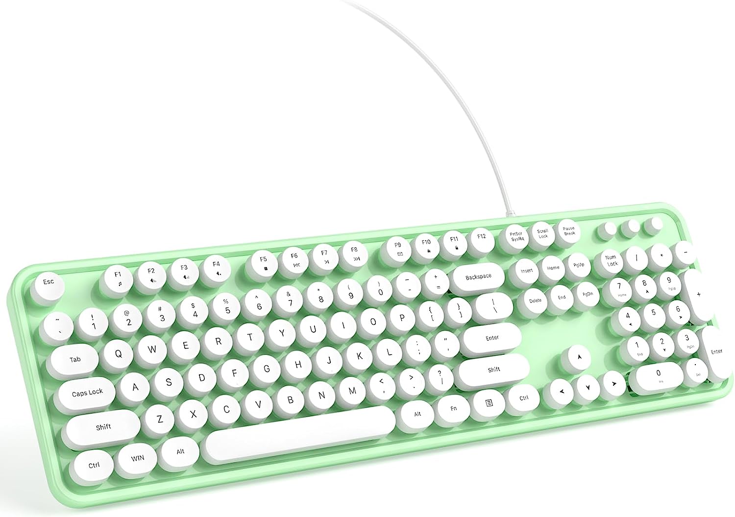 KNOWSQT Wired Computer Keyboard - Milk Tea Colorful Full-Size Round Keycaps Typewriter Keyboards for Windows, Laptop, PC, Desktop, Mac