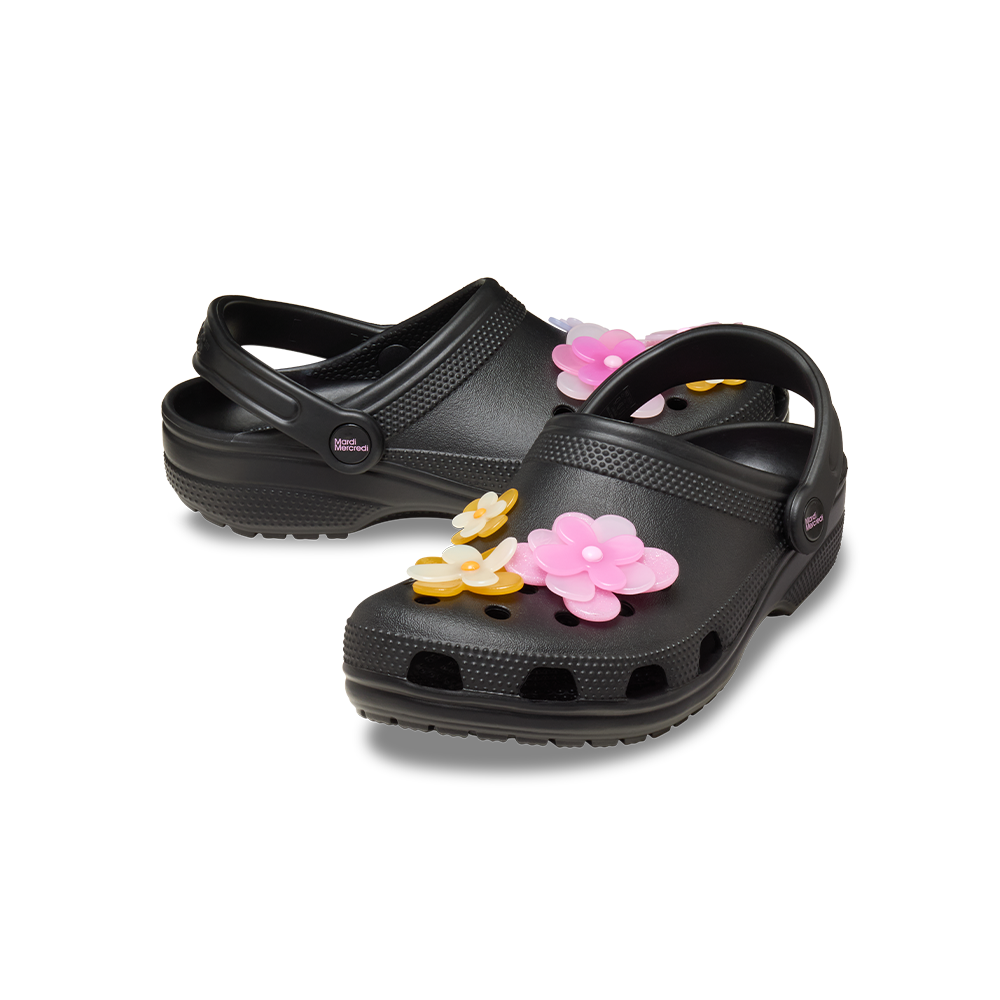 The Mardi Mercredi x Crocs Classic Clog adds Mardi Mercredi’s 'Signature Flower' design as Jibbitz™ Charms to Crocs’ most well-known silhouette, the Classic Clog, offering a fresh and vibrant twist to the original.