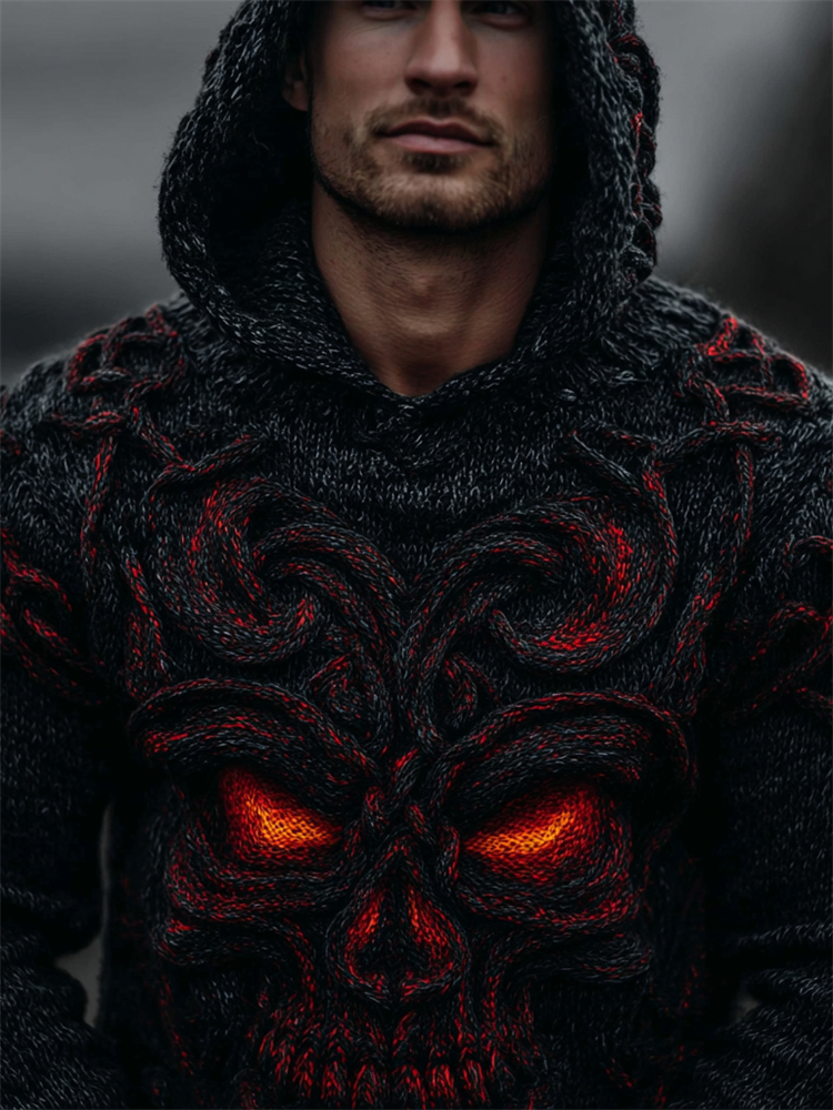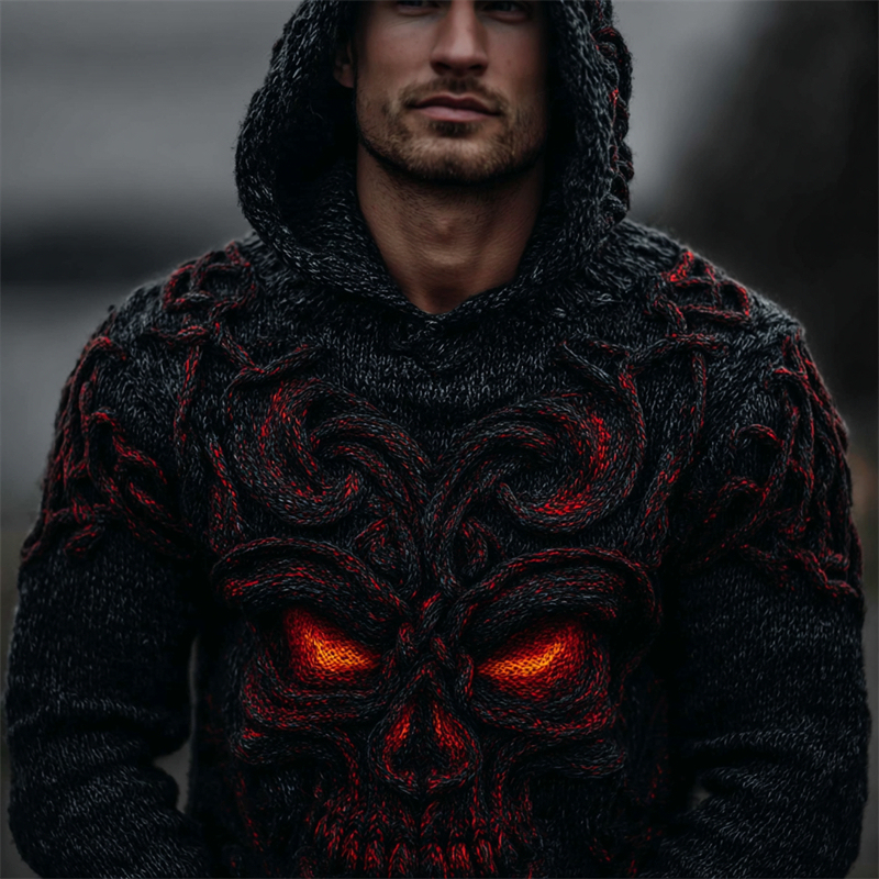 Men‘s Viking Celtic Skull Cozy Chunky Hooded Sweater