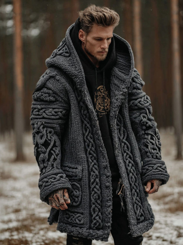 Men's Viking Celtic Knot Contrast Button Cozy Midi Cardigan Sweater