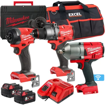 MILWAthtUKEE - 18V 3 Piece Power Tool Kit with 2 x 5.0Ah Batteries T4TKITM-109
