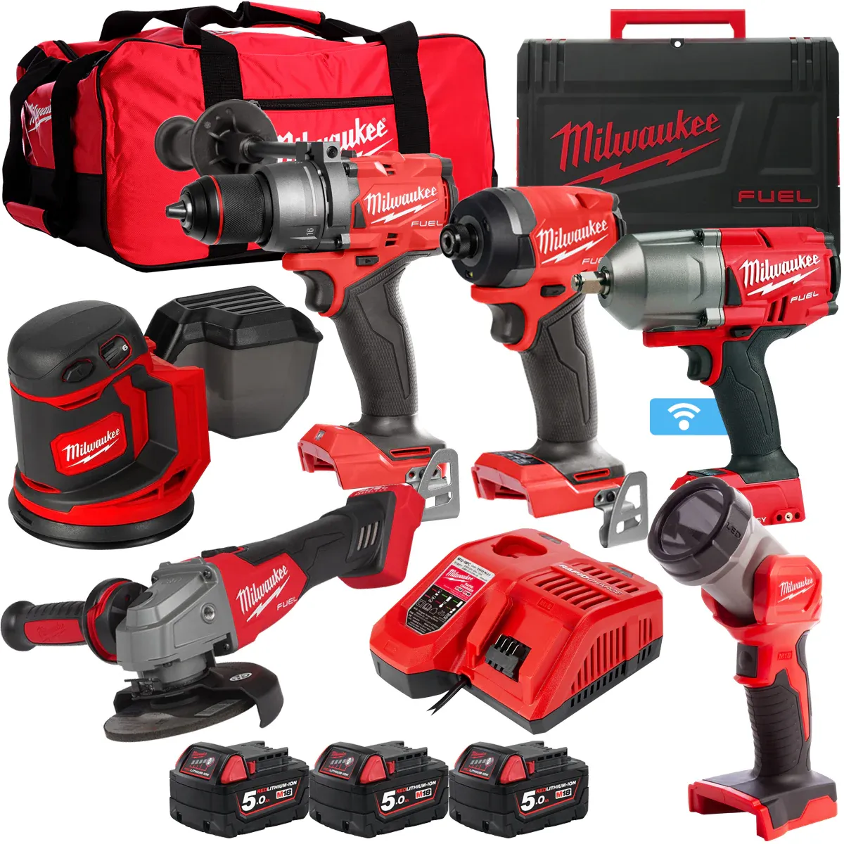 Milwaukee 18V 6 Piece Power Tool Kit with 3 x 5.0Ah Batteries T4TKITM-117