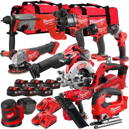 Milwaukee 18V Cordless 11 Piece Tool Kit with 6 x 5.0Ah Batteries & Charger in Bag T4TKIT-515