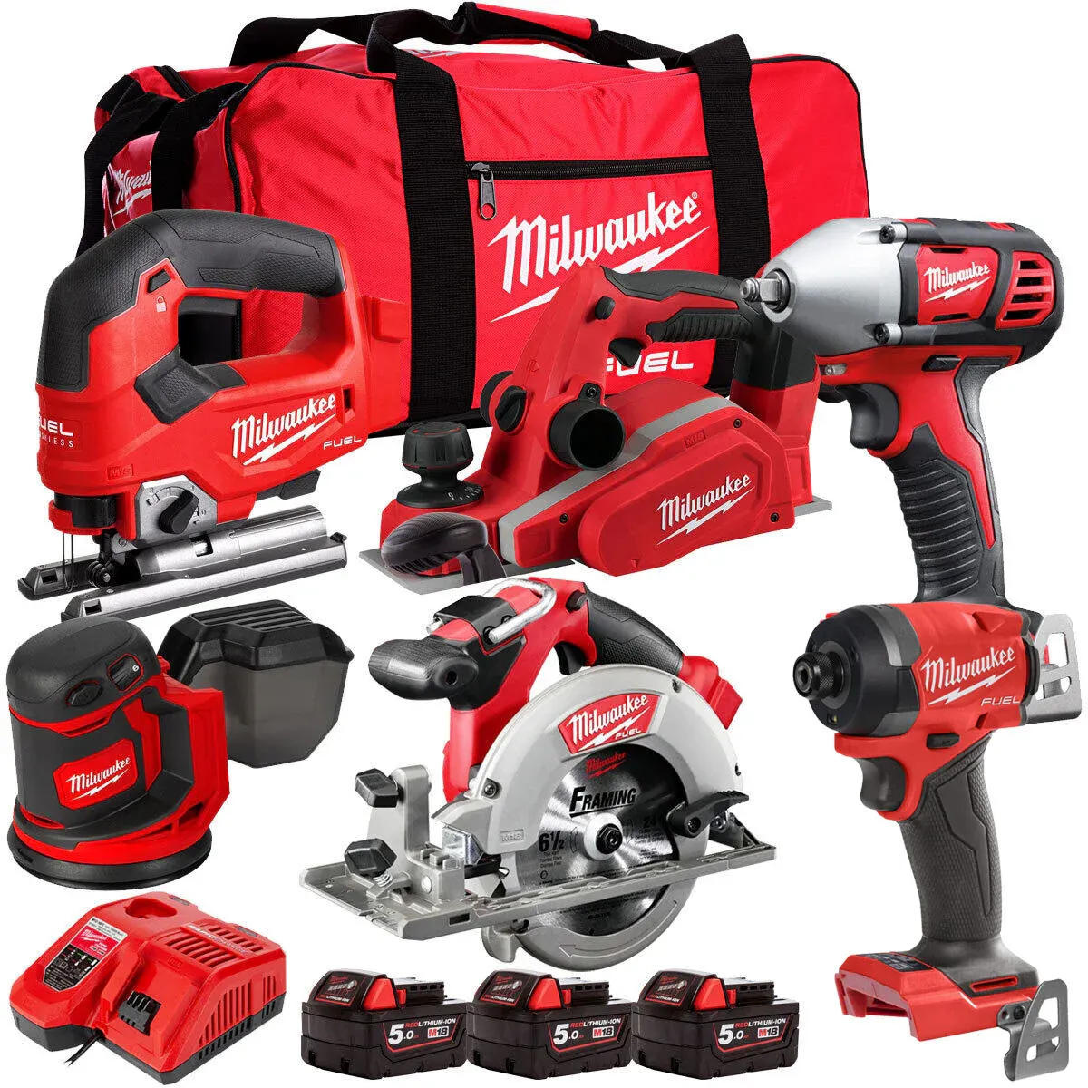 MILWAthtUKEE - 18V Cordless 6 Piece Tool Kit with 3 x 5.0Ah Batteries & Smart Charger in Bag