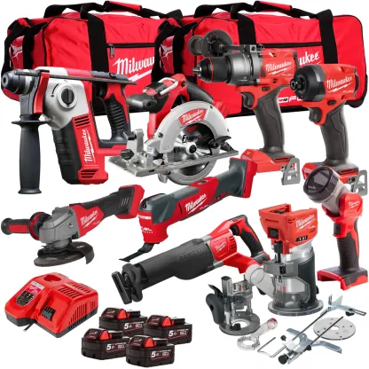 Milwaukee 18V Cordless 9 Piece Tool Kit with 4 x 5.0Ah Batteries & Charger in Bag T4TM-6