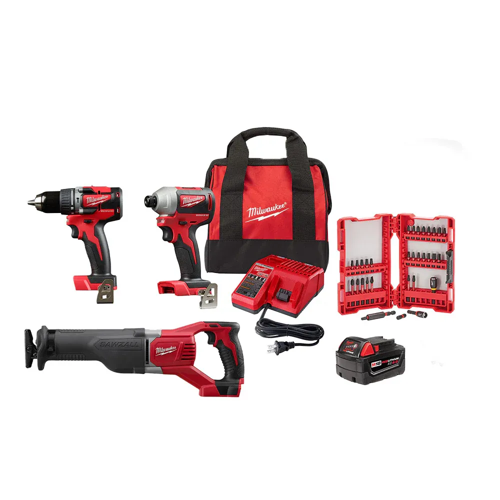 MILWAthtUKEE - 2850-21XC-DKSW M18 18V Cordless Lithium-Ion 3 Tool Combo Kit w/Bit Set