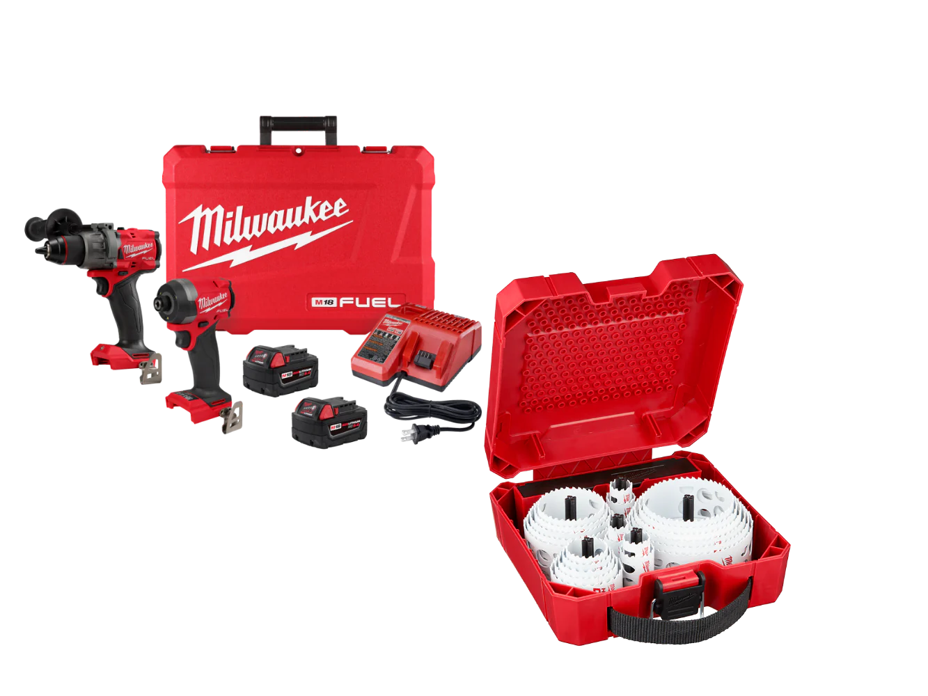 MILWAthtUKEE - 3697-22HS M18 FUEL 18V 2 Cordless Tool Combo Kit w/ Hole Saw Kit