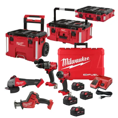 MILWAthtUKEE - 3697 M18 FUEL 18V 4 Cordless Tool Battery Kit w/ 3 Packout Tool Boxes