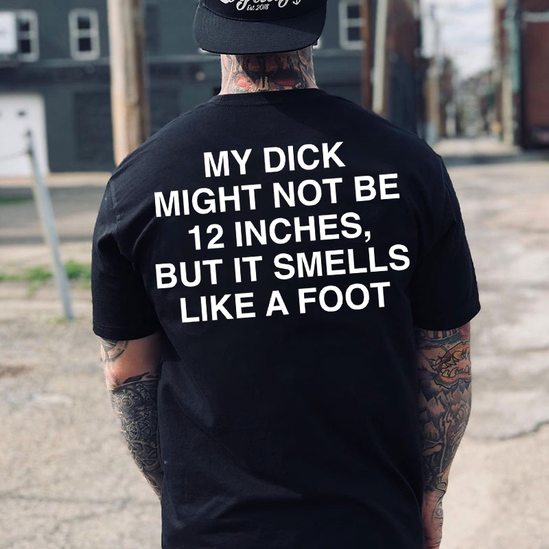 Product Name | MY DICK MIGHT NOT BE 12 INCHES BUT IT SMELLS LIKE A FOOT Print Men's T-shirt |