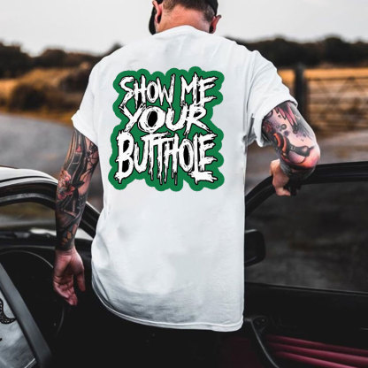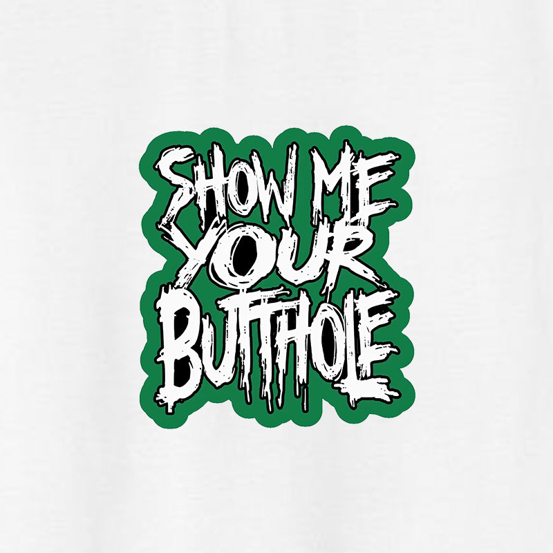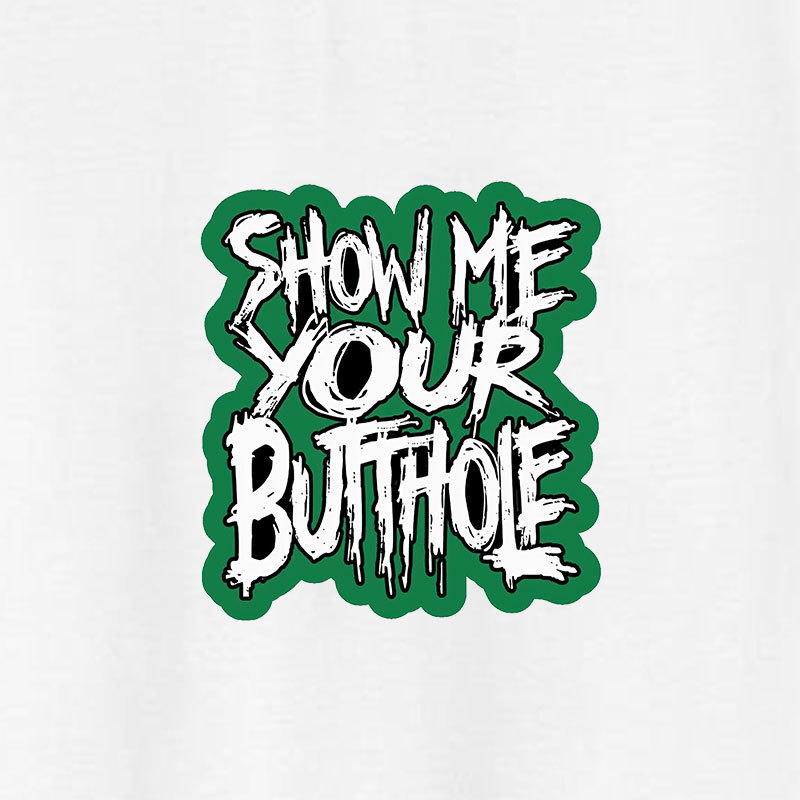 Product Name | SHOW ME YOUR BUTTHOLE White Print T-Shirt |