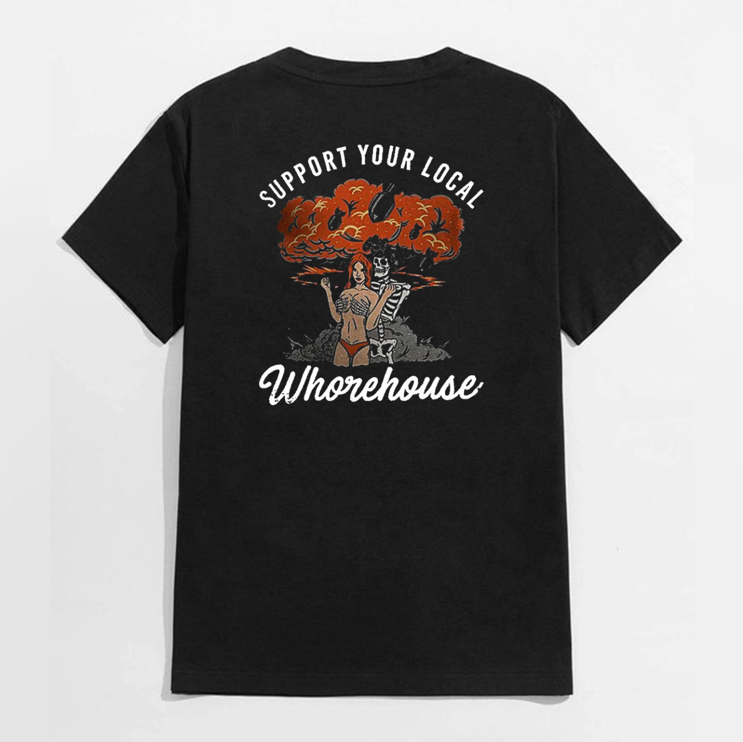 Product Name | SUPPORT YOUR LOCAL Whorehouse Flirt Graphic Black Print T-shirt |