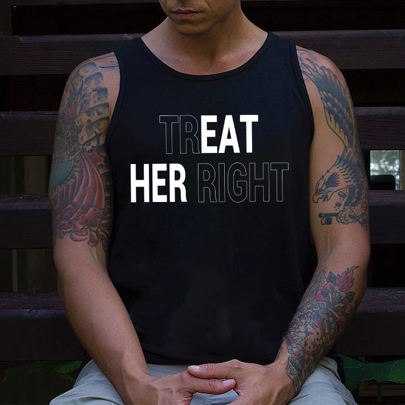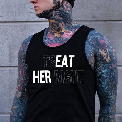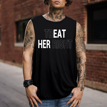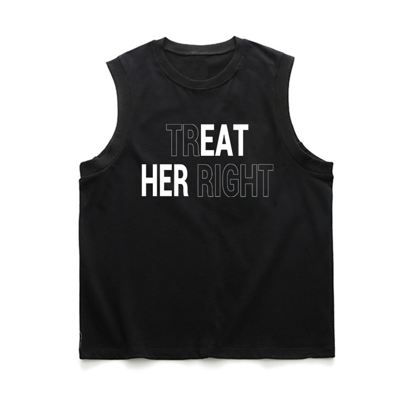 TREAT HER RIGHT Letter Graphic Black Print Vest