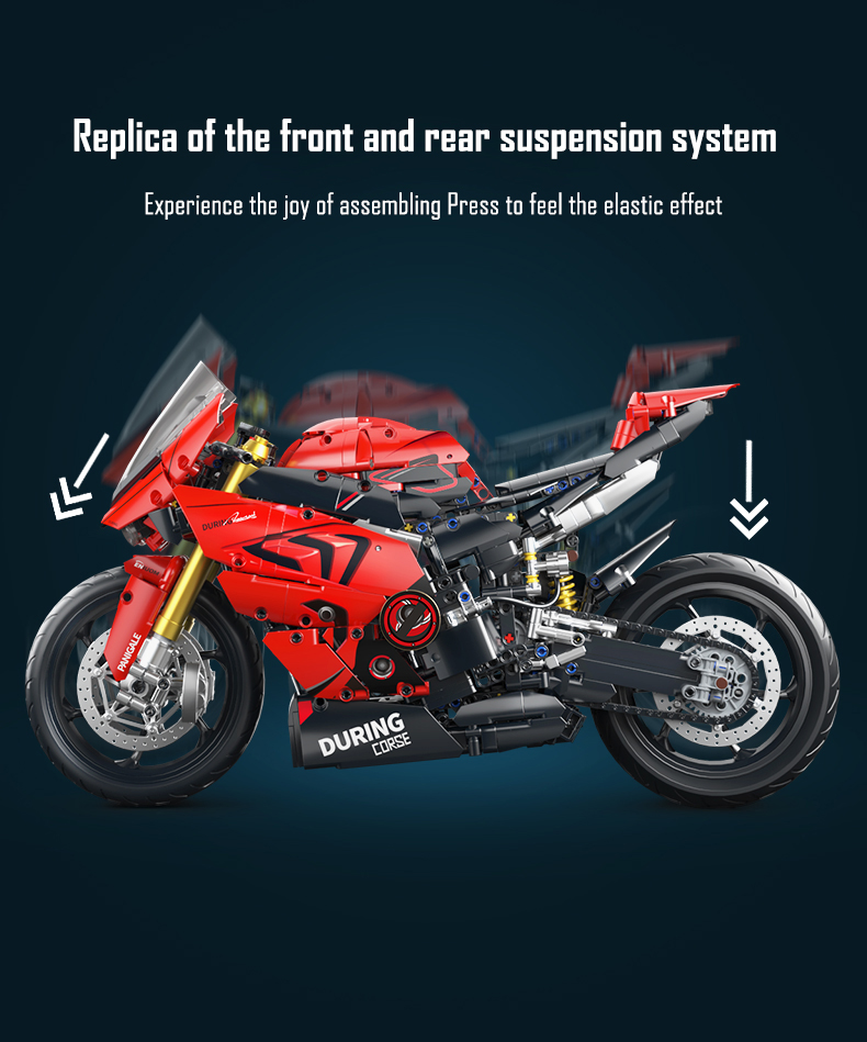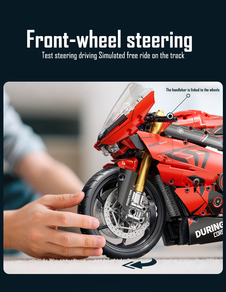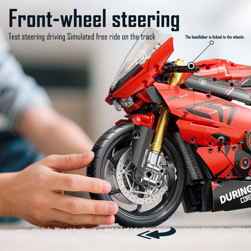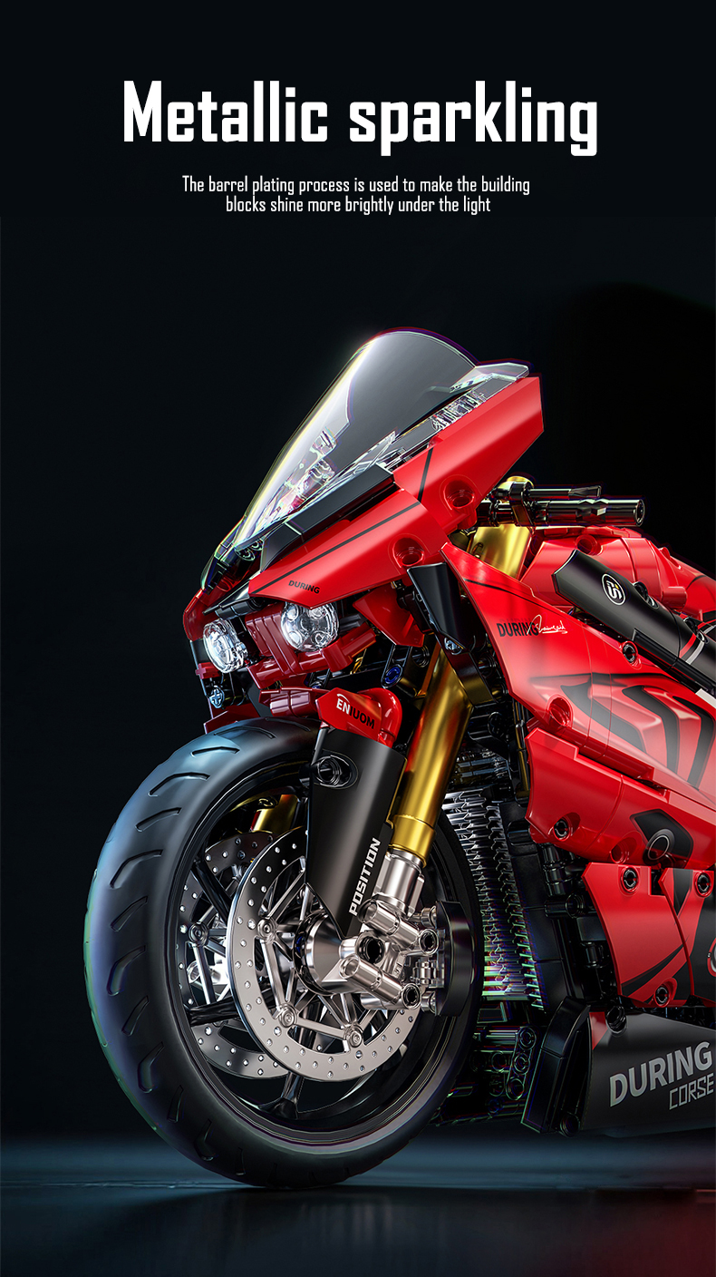 Return of the King! 1:5 super-large proportion of motorcycle building blocks, restore professional racing style, red and black color shows domineering. Precision parts, carefree assembly, for you to create an exclusive mechanical car.