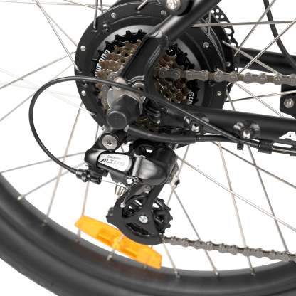 The Riptide 3 is equipped with a 7-speed Shimano transmission and Rapid Fire Shifter, allowing for smooth and precise gear changes. Its lightweight aluminium frame is rust-resistant and built to withstand coastal conditions, ensuring durability for years to come. The Tektro hydraulic disc brakes with motor safety cut-off provide superior stopping power and control. The LCD multi-function display keeps you informed with key metrics such as trip distance, speed, battery level, and more, while also featuring a USB charging port for your devices.