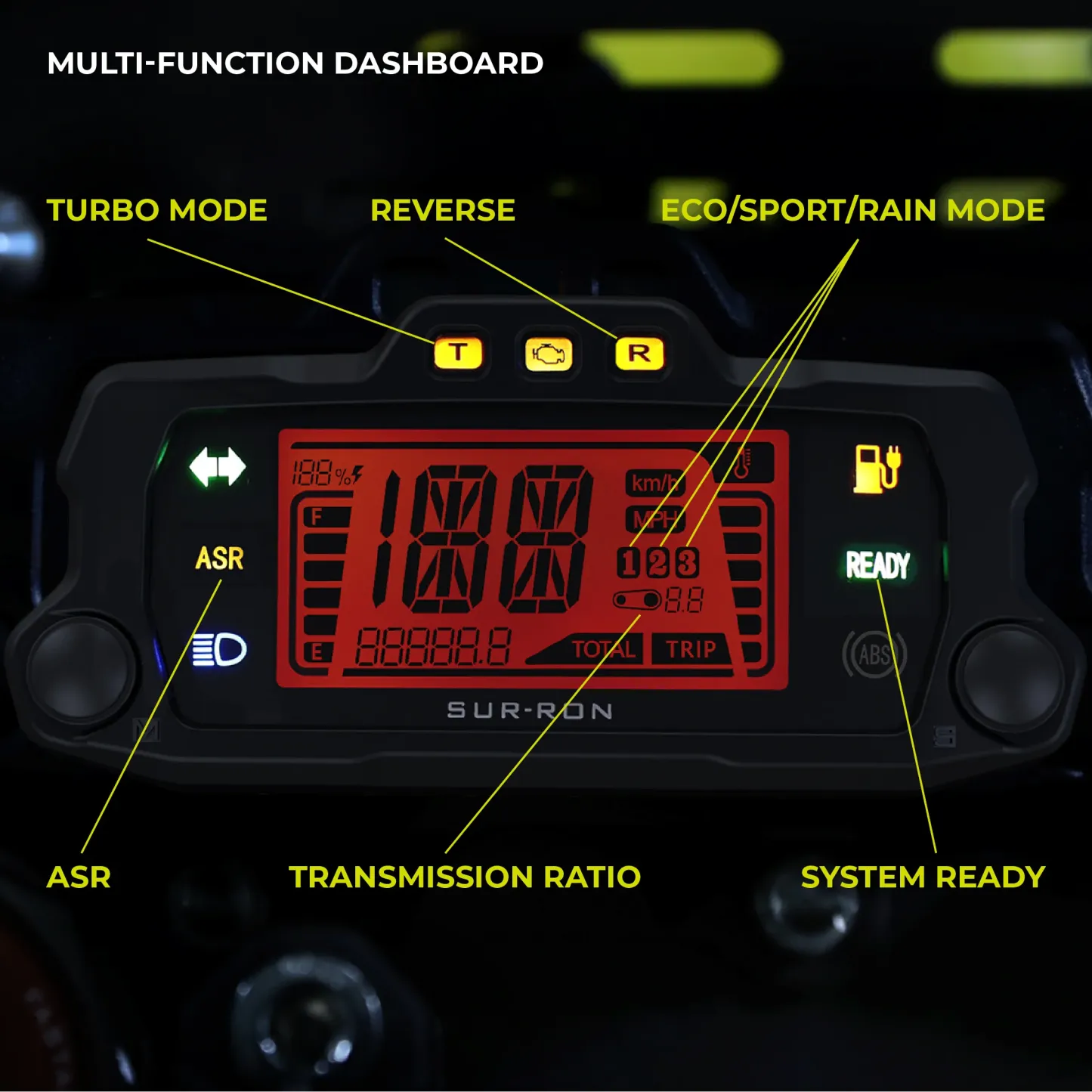 The Surron Storm Bee is fitted with active slip reduction systems that is independently developed by Surron. It is a multi-level adjustable system that can be adjusted easily during your ride to adapt to any road or terrain condition to obtain maximum grip at all times making cornering safe and secure.