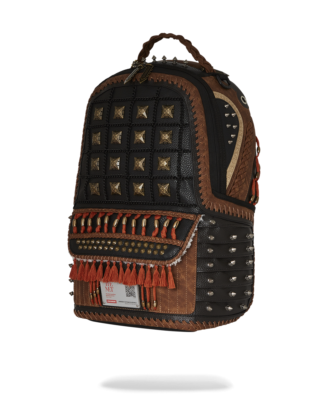 A spectacular suit of armor from 17th¨C18th-century Japan informs the studded design on this backpack. While this ty