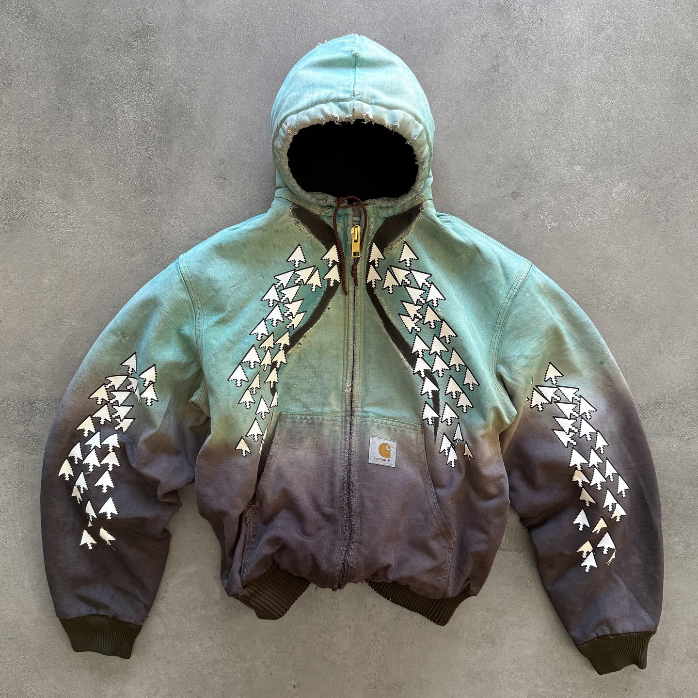 Vintage distressed gradient arrow pattern zip-up padded jacket