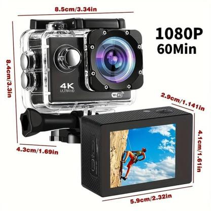 ·[Excellent Picture Quality]:Equipped with a 2.0-inch image sensor, it supports 30FPS Ultra HD video recording, and 12 megapixels to capture photos with rich details. HDR function can accurately restore colors and contrast between light and dark in the picture, so that whether you want to record a magnificent landscape or capture a wonderful moment, you can enjoy cinema-quality picture quality.·[Excellent Anti-Shake Performance]:Built-in advanced anti-shake function effectively counteracts vibration, shaking and tilting during sports, ensuring stable and smooth videos. Bumps on the road when cycling, body shaking when running, will not affect the video quality, allowing you to easily record shake-free sports images.·[Strong waterproof ability]:The camera has been professionally designed to be waterproof, installing the matching waterproof case can work normally underwater at a certain depth, which is very suitable for playing in the water.·[Sport Scene Adaptation]: Designed for sports, it is compact and lightweight, easy to carry. Whether you are riding through the mountains and rivers, climbing peaks, or participating in extreme sports, it can follow you closely, and with its excellent performance, you won't miss any wonderful images, and meet the needs of sports shooting in all aspects.·[Ideal Streaming Choice] :HD image quality with convenient transmission function, through the built-in wireless module, you can easily connect to the device to realize real-time video transmission, it is the right choice for daily live streaming. Share your exciting life and adventures anytime, anywhere, and interact with viewers in real time.
