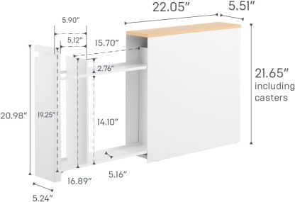 Home Pull-Out Bathroom Storage Cabinet – Slim Bathroom Storage Cabinet with Wood Top, Steel Organizer for Toilet Paper and Cleaning Supplies, Modern Space-Saving Design, White - Steel + Wood