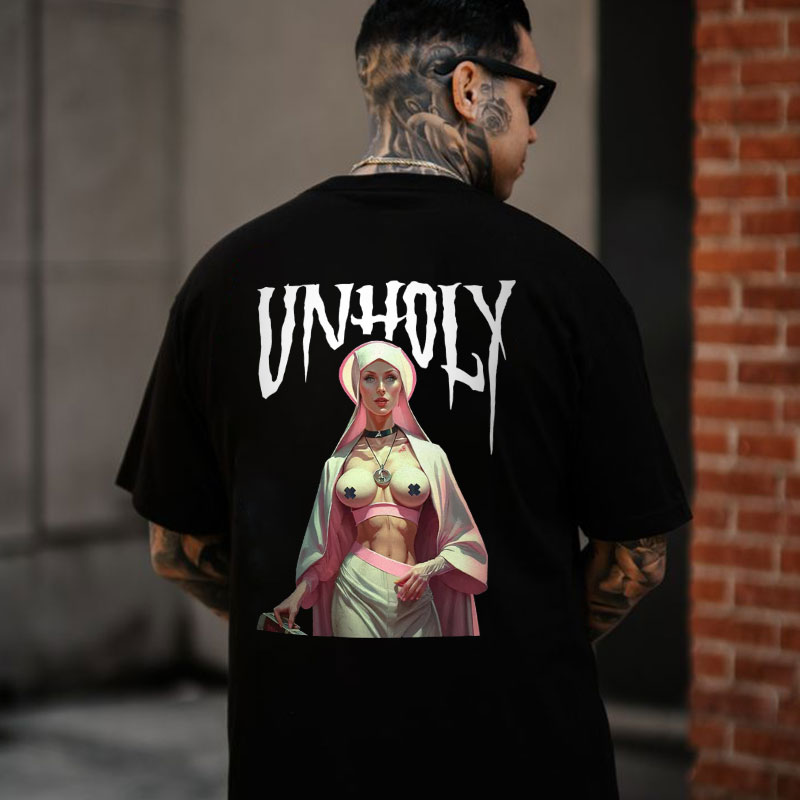 UNHOLY Naked Nun Graphic Casual Black Print T-shirt