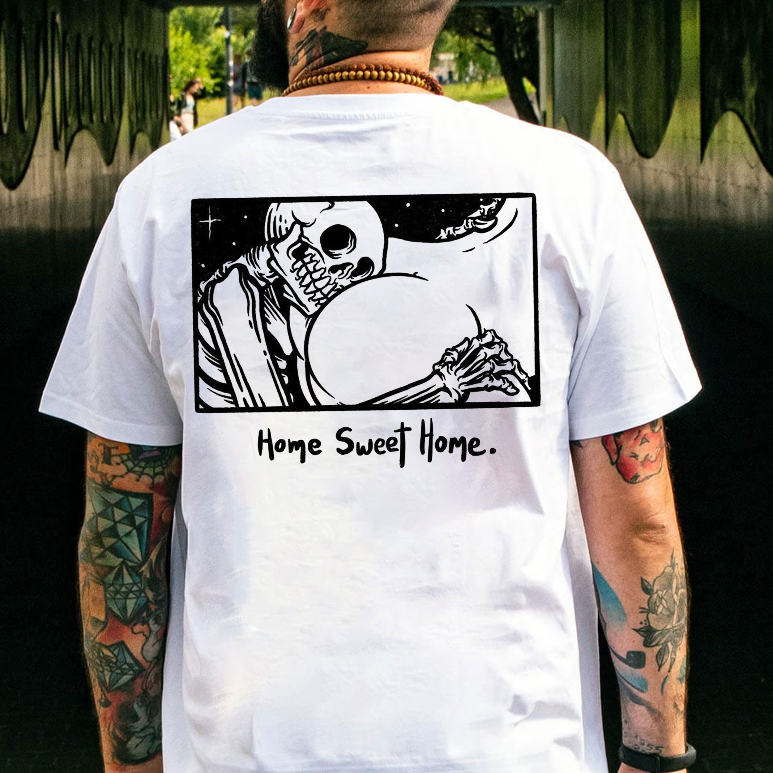 HOME SWEET HOME Skull with Naked Ass White Print T-Shirt