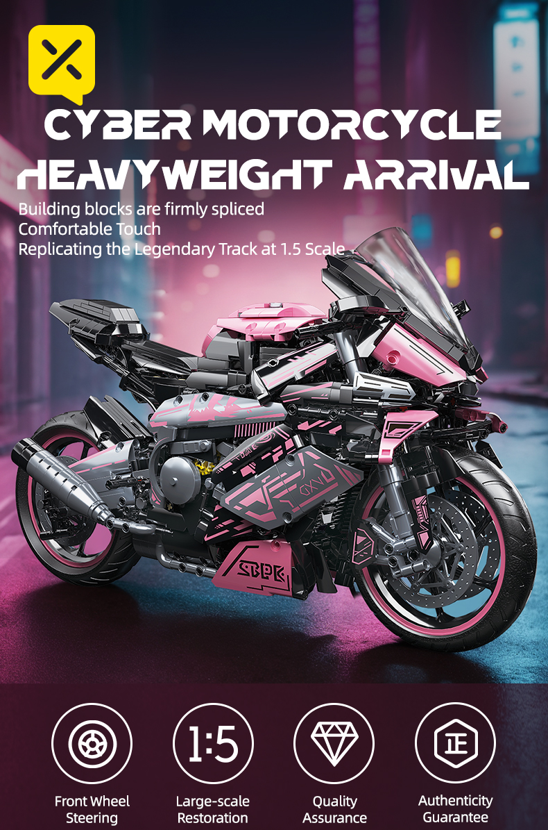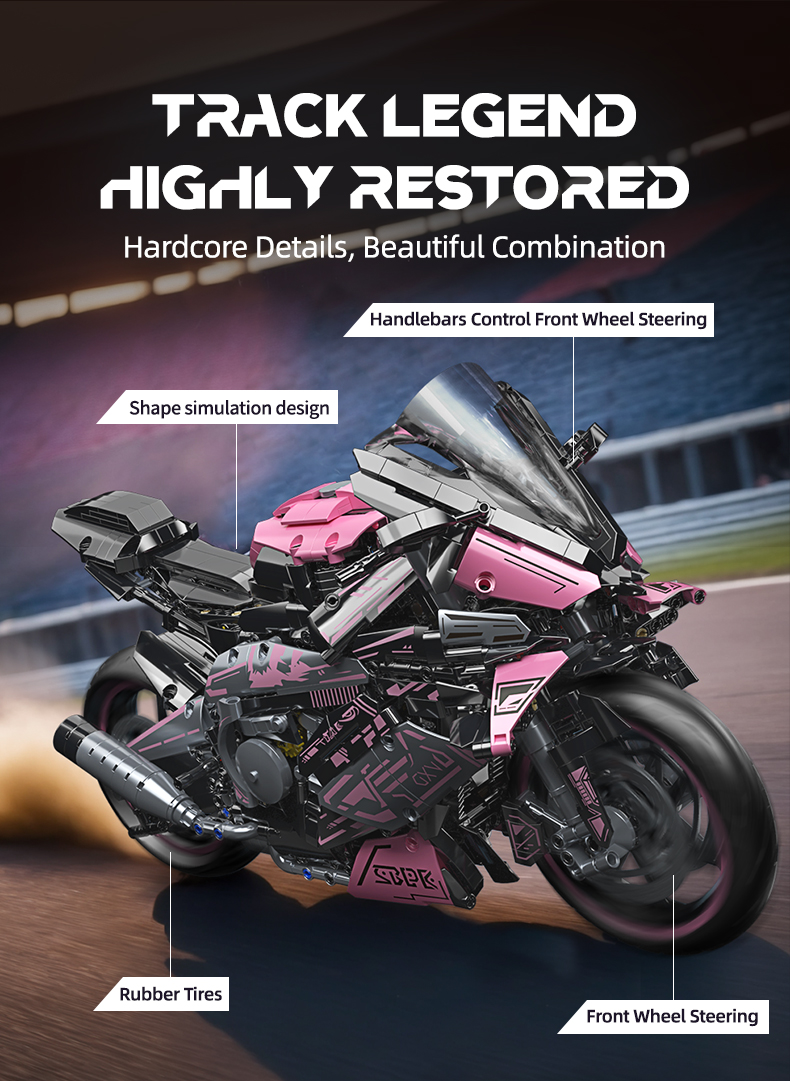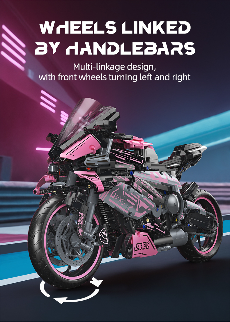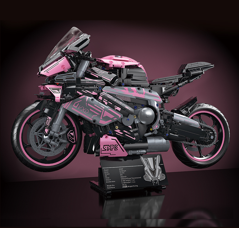 1:5 2060+pcs pink motorcycle building block assembly model, easy to assemble, suitable as a gift for birthdays, Christmas, Halloween, Thanksgiving, New Year, and parties