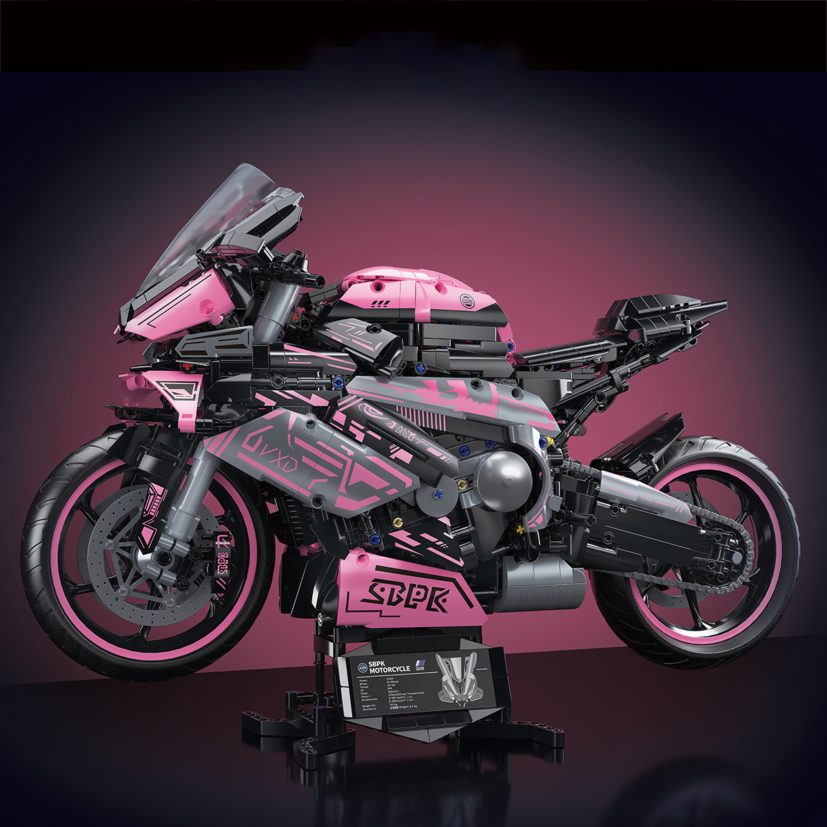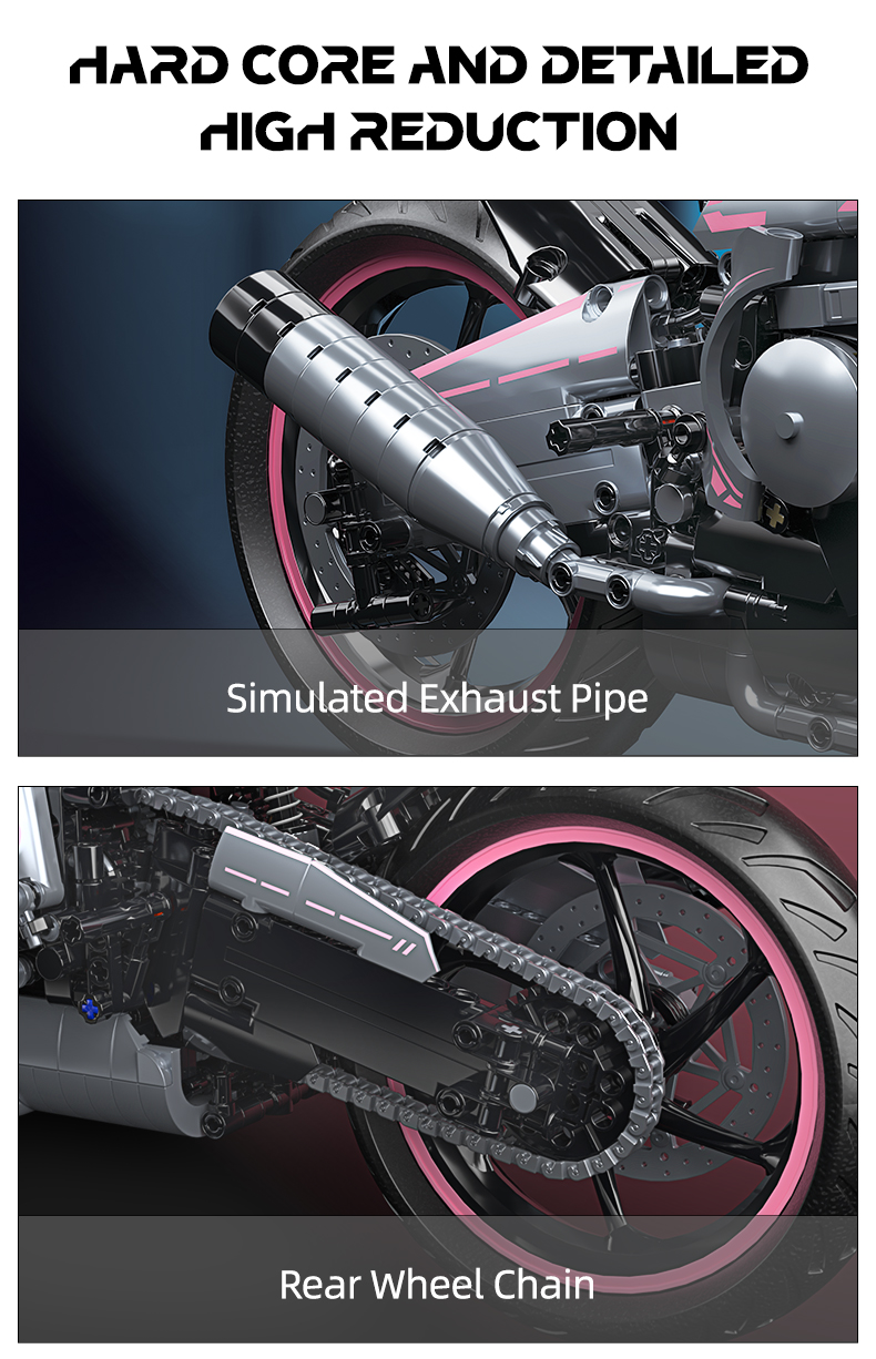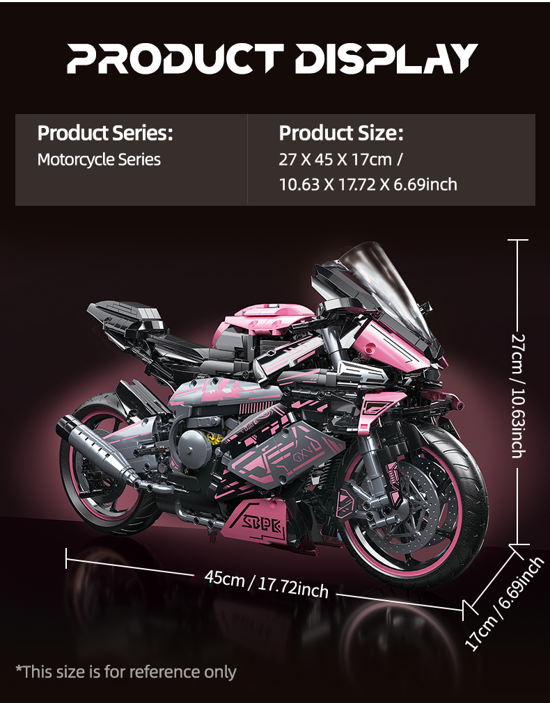 1:5 2060+pcs pink motorcycle building block assembly model, easy to assemble, suitable as a gift for birthdays, Christmas, Halloween, Thanksgiving, New Year, and parties