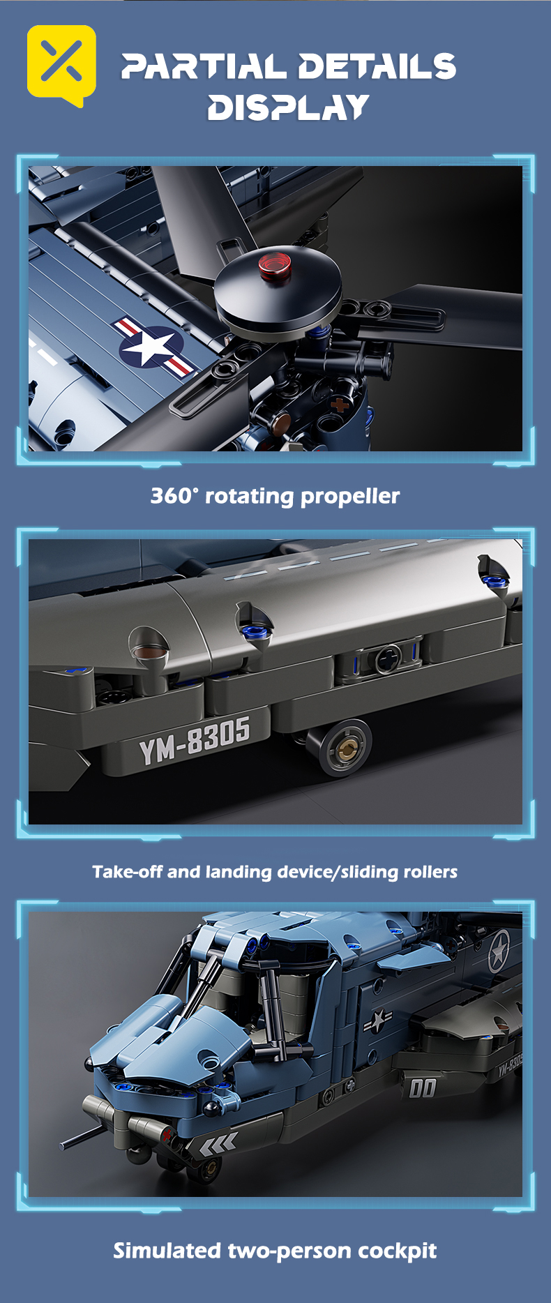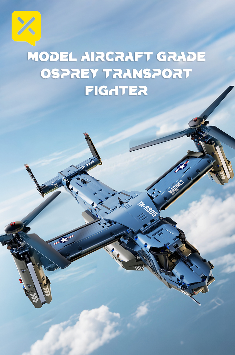 1486PCS "Osprey" fighter building blocks, unlock the new experience of creative assembly. Based on the V - 22 Osprey, the assembly process is full of fun with exquisite building blocks. Whether it is military fans or building block enthusiasts, can find f
