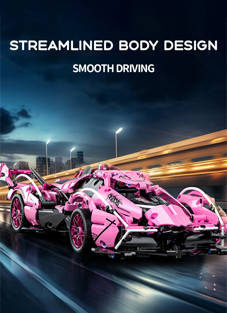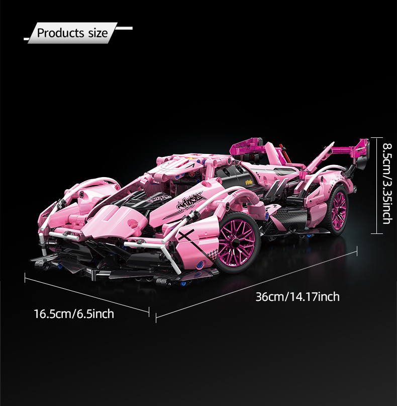 981 building block cars, 1:14 super sports car shape, cool pink appearance, full of scientific and technological design, suitable as a birthday gift for fashion lovers