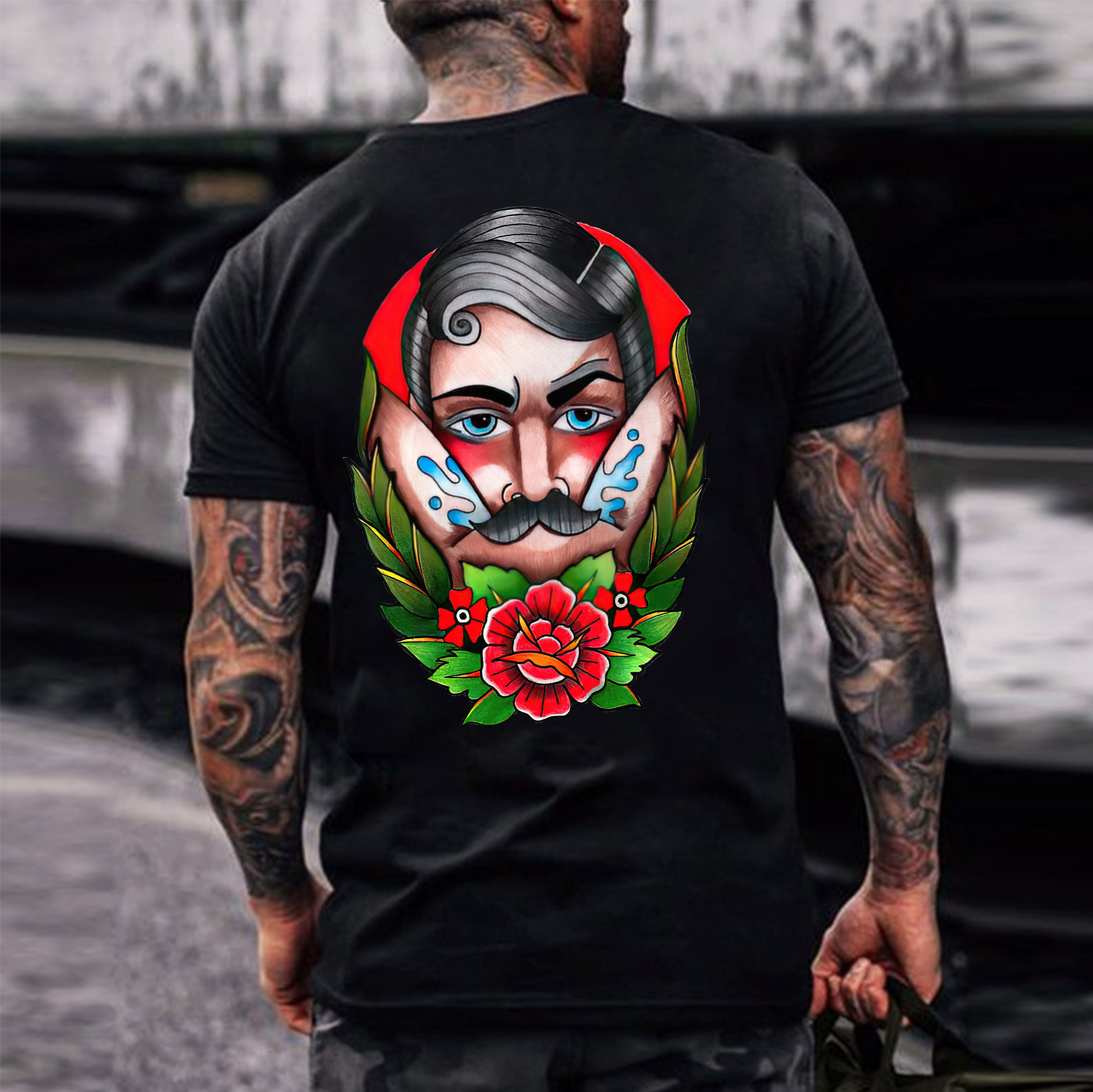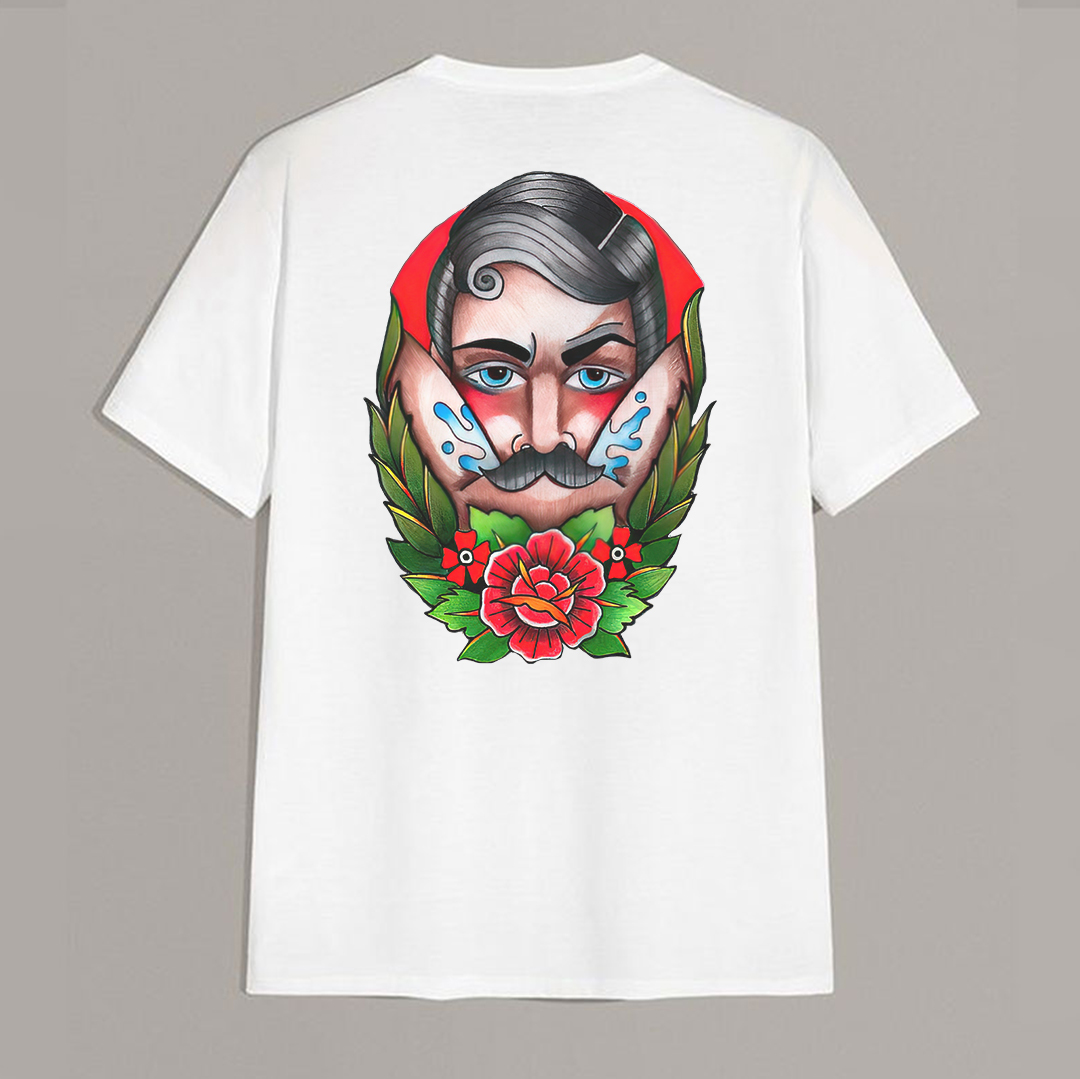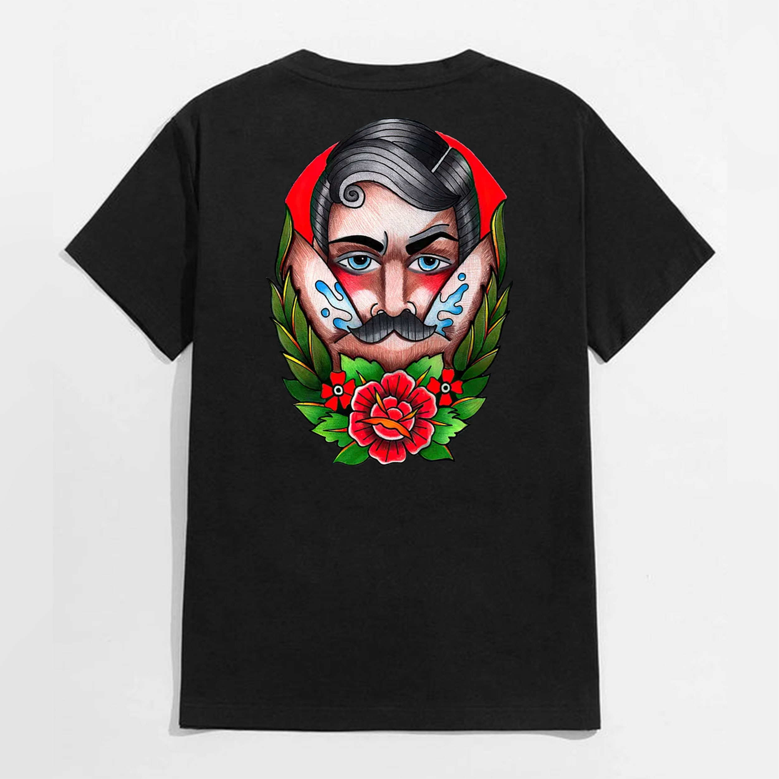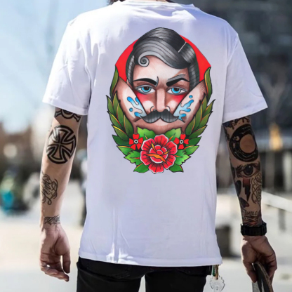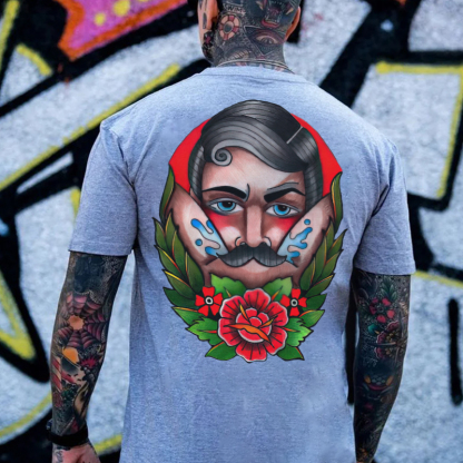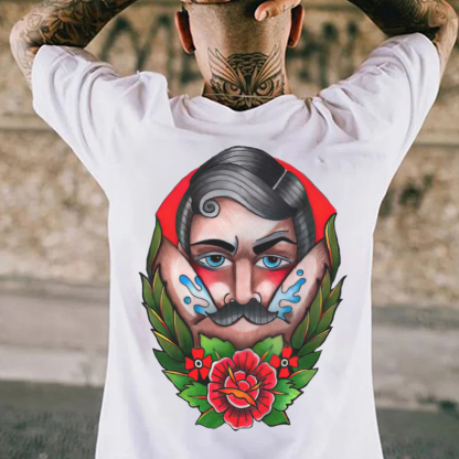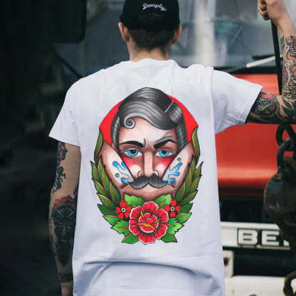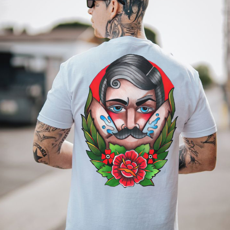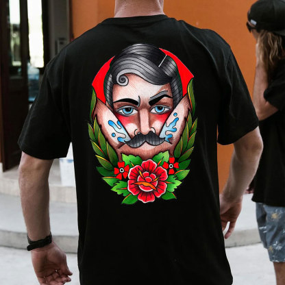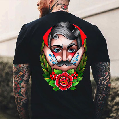 Product Name | Beard Man with Flowers Black Print T-shirt |