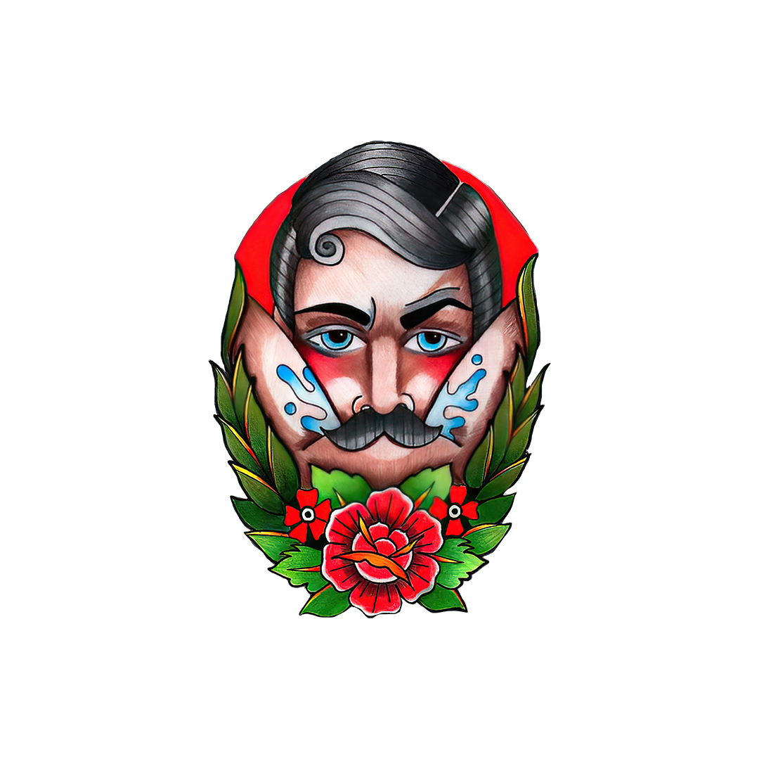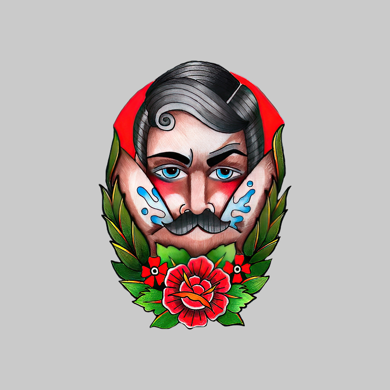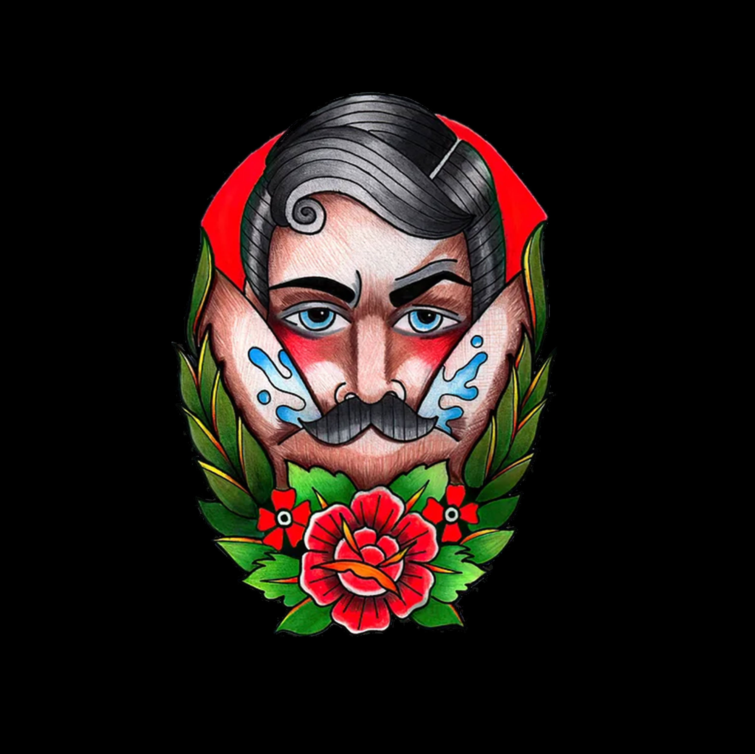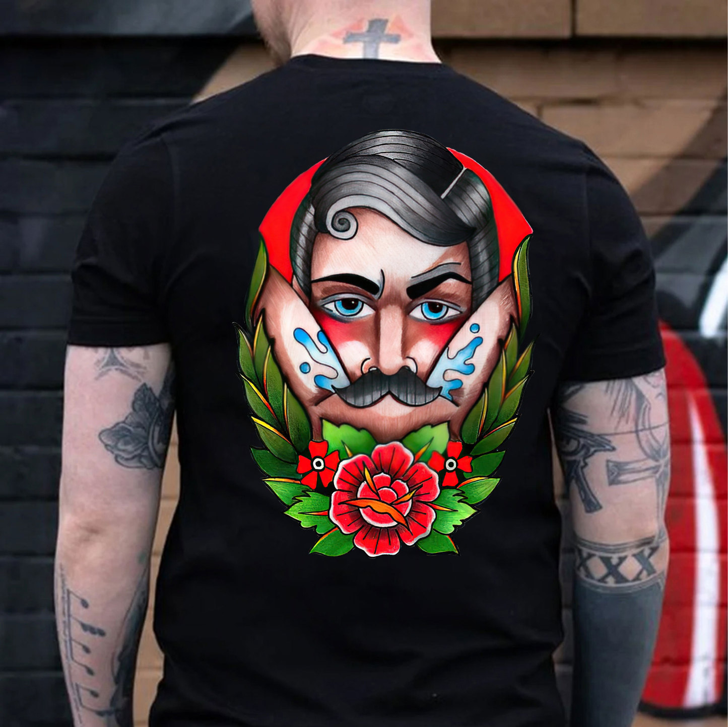 Product Name | Beard Man with Flowers Black Print T-shirt |