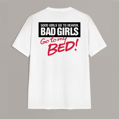 Product Name | GOOD GIRLS GO TO HEAVEN BAD GIRLS GO TO MY BED White Print T-shirt |