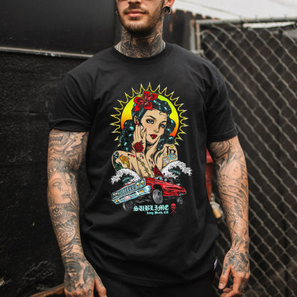 Product Name | Retro Girl Poster Casual Design Graphic Black Print T-shirt |