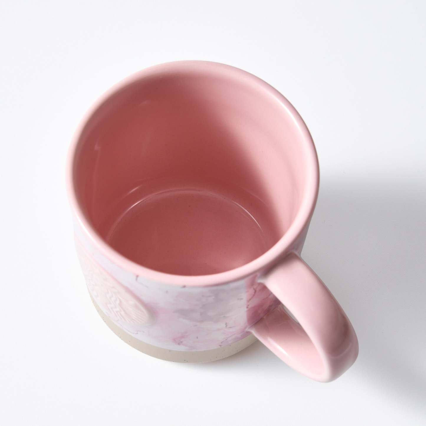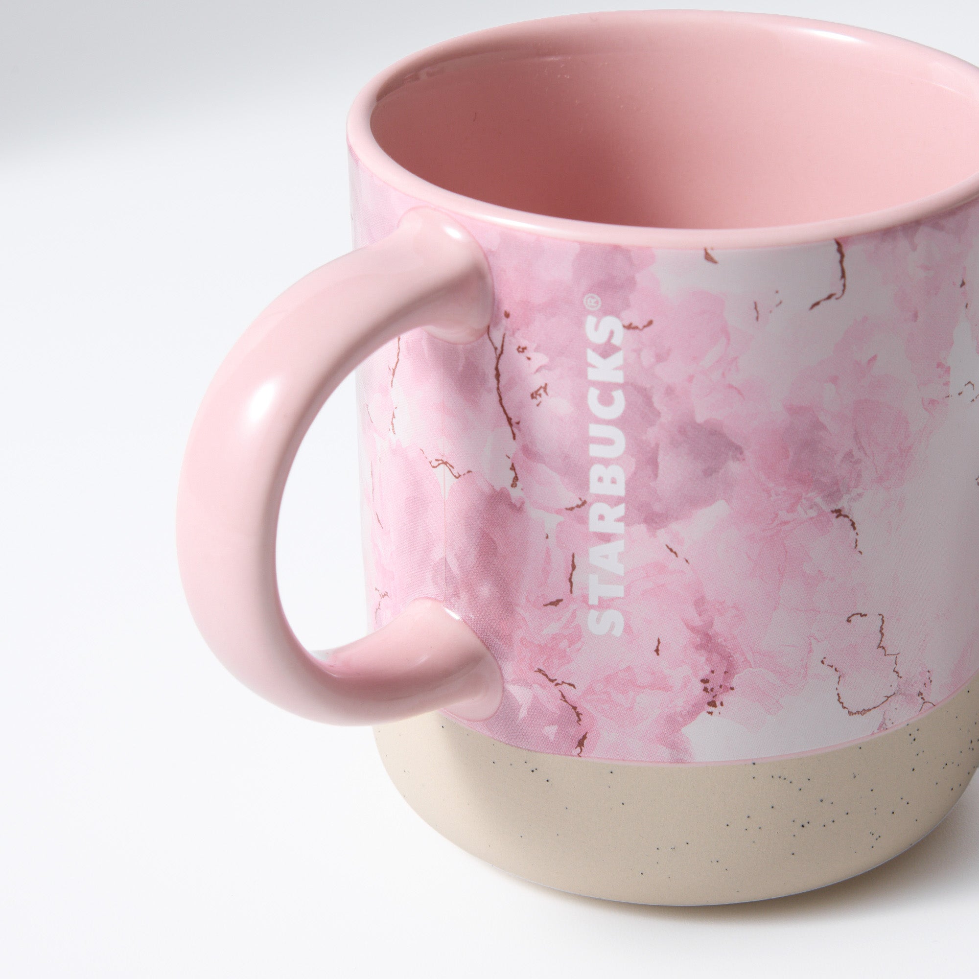 The Starbucks Sakura 2026 Marble Mug 355ml is part of the limited Starbucks Sakura 2026 collection, featuring a modern marble pattern that blends elegant sakura-inspired tones with the natural texture of clay visible around the base.